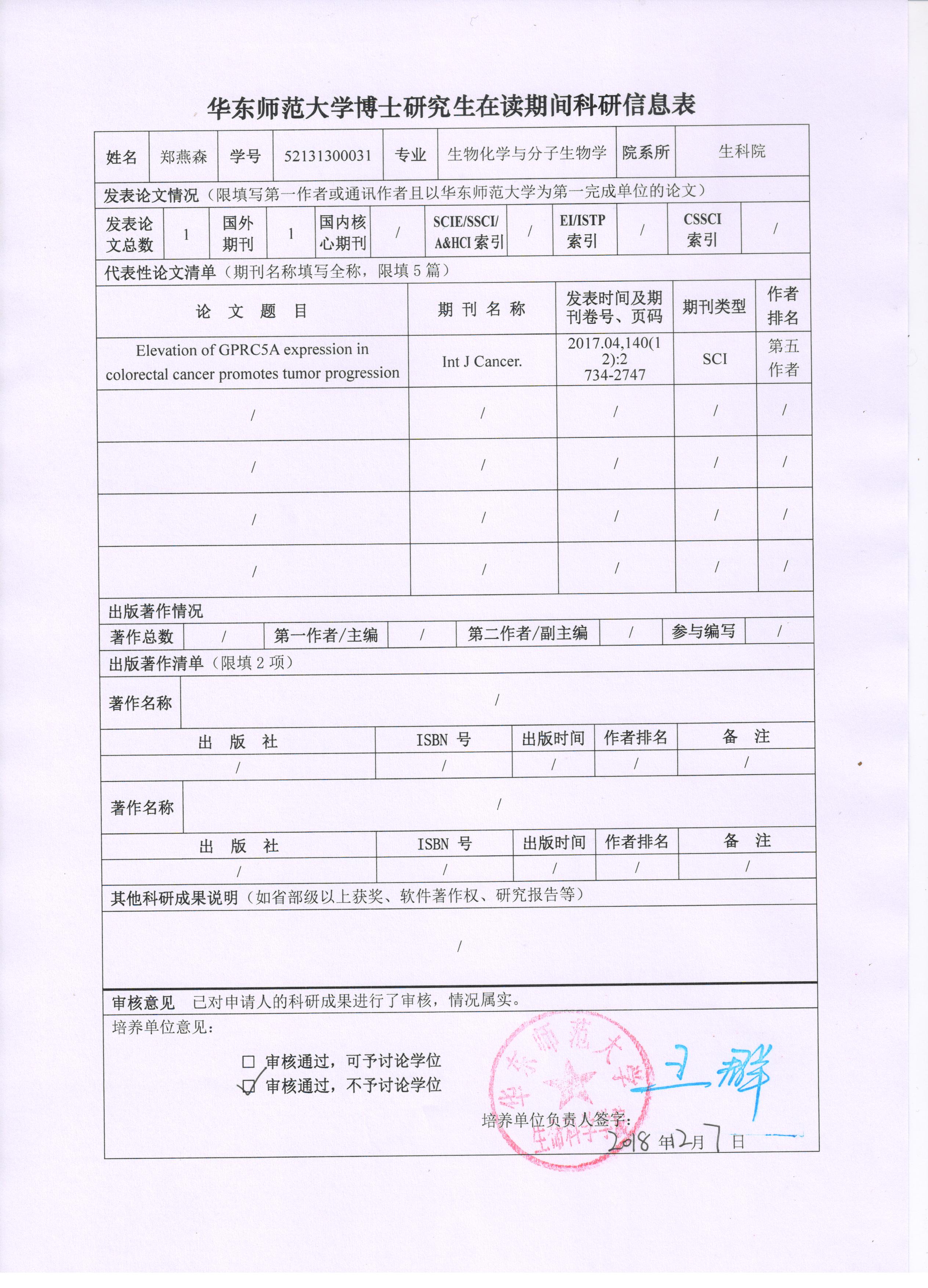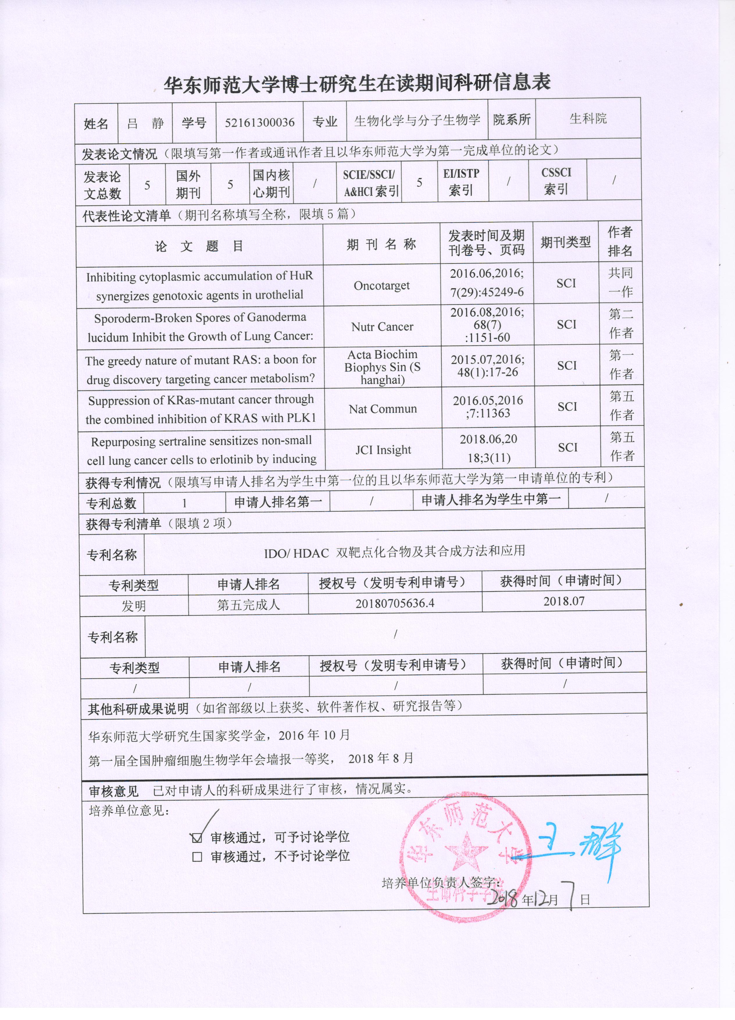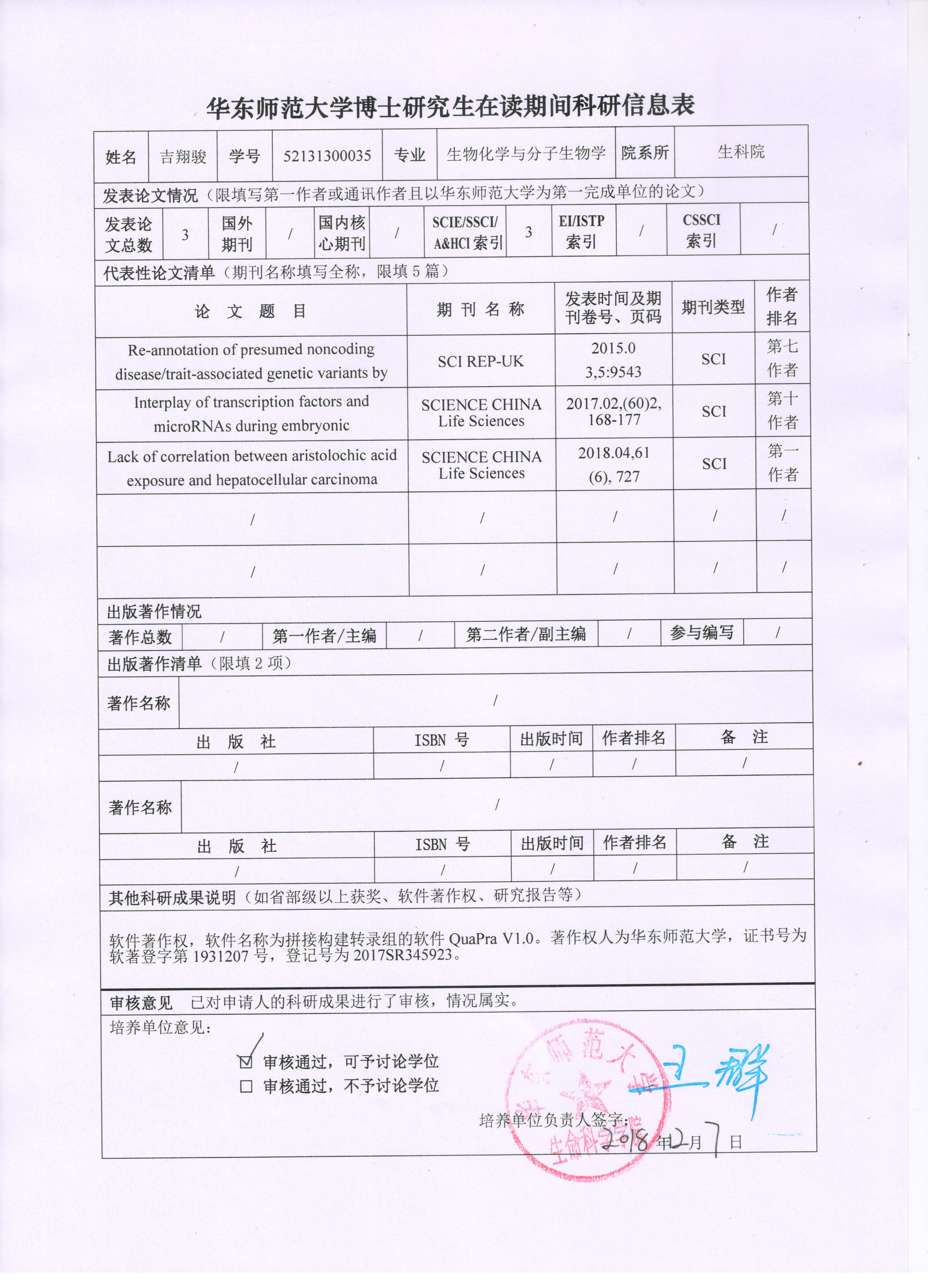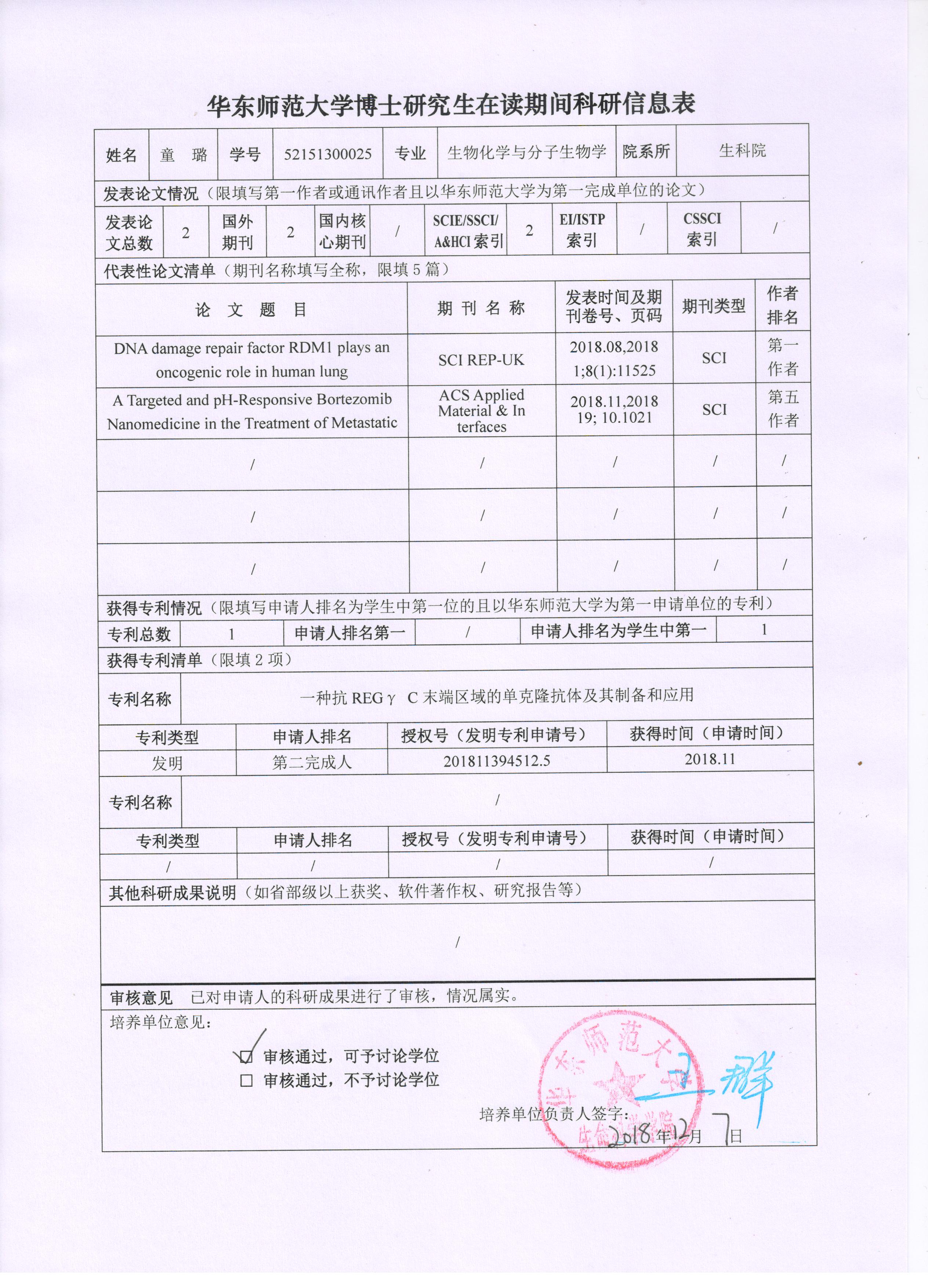2018-2019年度第一学期博士研究生在读期间科研成果公示