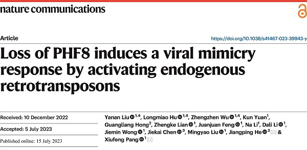 7.Liu, Y. et al. Loss of PHF8 induces a viral mimicry response by activating endogenous retrotransposons. Nat Commun 14, 4225, doi:10.1038/s41467-023-39943-y (2023).