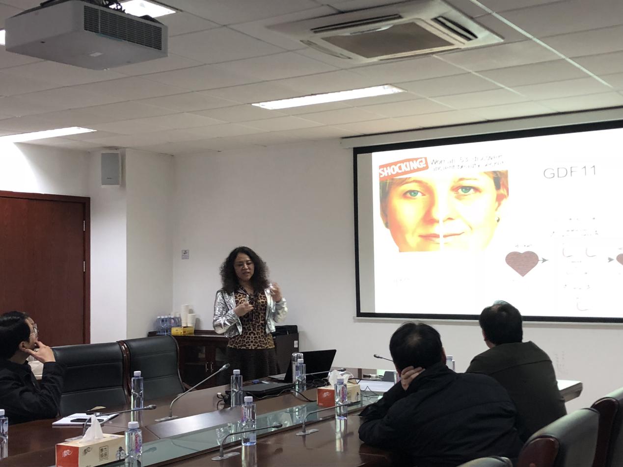 会议期间,孙教授首先给大家介绍间充质干细胞具有成骨,成软骨,成脂肪的作用,随后通过她们的实验技术给大家展示了成纤维细胞的“返老还童”(rFibs),这些“返老还童”的rFibs具有很大的增殖能力,可以促进脉管系统的再生,在体外可以将损伤的骨头修复,并通过小鼠实验给大家展示注射rFibs可以使老年的鼠没有正常的老鼠容易衰老,并可延长其寿命,接着孙教授通过举例一个72岁老太太通过干细胞治疗达到良好的恢复效果,这个结果让在座的各位都非常震惊,也对干细胞治疗充满好奇。