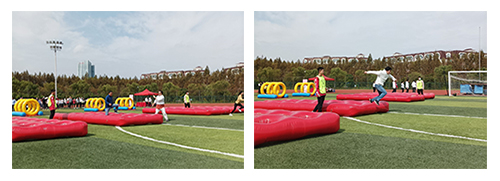 今年的教职工运动会以趣味竞赛为主,分别为第九套广播操比赛以及障碍闯关、协力云梯、航天小分队三个趣味项目,其中,教职工第九套广播操比赛荣获最佳表演奖。