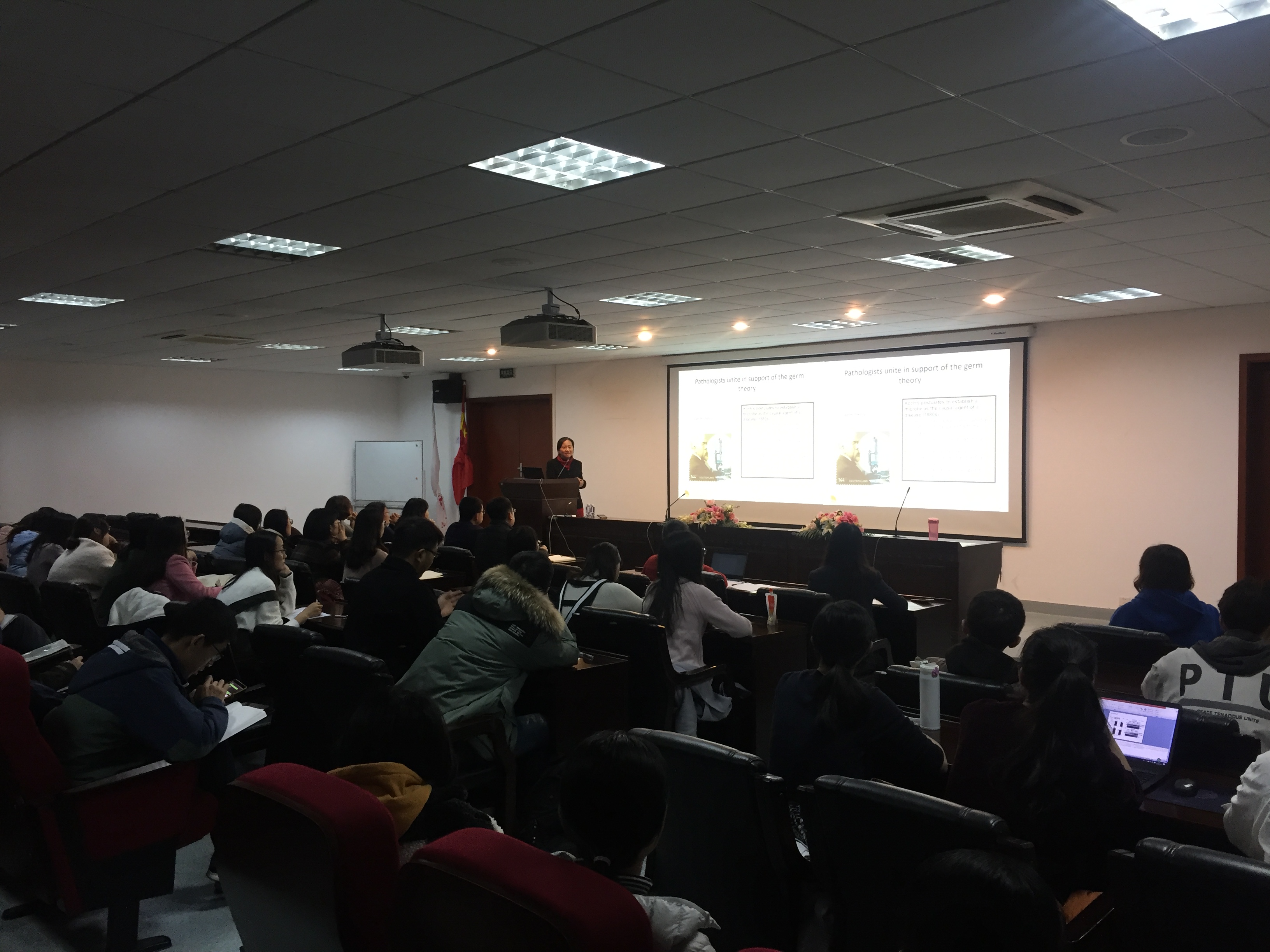 本讲座唐威华研究员针对当下生命科学的热点研究领域——植物与真菌(微生物)互作机制展开报告,并对她在禾谷镰刀菌与小麦和玉米互作分子机制的研究成果进行了介绍。唐老师首先从真菌的危害切入,让我们认识到研究植物与微生物互作和防治的重要性,随后依次介绍了病原菌的分类、生活史、侵染策略,以及植物对真菌侵染的应答反应和抗病分子机制,并对该领域国内外研究进展进行了详细解读,让师生们对植物与微生物分子互作领域有了更深入的了解。最后唐老师介绍了她团队近年来发现禾谷镰刀菌在与小麦和玉米互作中不同的致病新策略,使我们深入认识到病原真菌致病过程的多变性和防治的复杂性。在座师生在获得知识的同时,也对科学的逻辑思维和研究方法有了更深刻的理解。唐威华研究员细致的讲解,丰富的科研成果和务实的科研态度打动了每一位师生,报告结束后师生们积极提问,得到了唐老师的细心解答。讲座在热烈的讨论的氛围