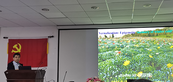 何跃辉教授深入浅出的讲解使得同学们对植物花期的调控有了更全面的了解。随后,各位老师和同学积极提问,何教授热情地进行了解答,会场气氛十分热烈。何教授深入浅出的讲解,让同学们对春化过程的表观遗传调控的研究有了全面的了解,在场的师生受益匪浅。