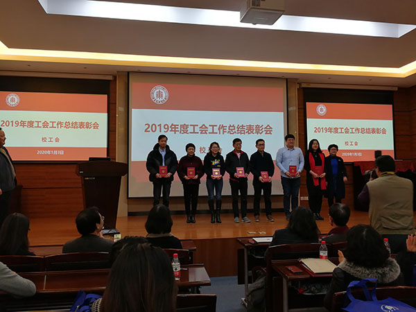 1月3日下午,校工会一年一度的工会工作总结表彰大会在中北校区俊秀楼会议室召开。全校各部门工会主席、各级各类受表彰的先进集体代表、先进个人和来自一线的广大工会工作者近100余人参加了此次总结表彰会。鉴黄师 王琛同志荣获校优秀工会干部,石玉帛、宋高洁、张颖、邹春静、范慧婷等同志荣获校优秀工会积极分子。