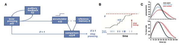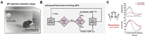 图1. 小鼠利用等待期间自身压杆产生的听觉反馈以准确计时