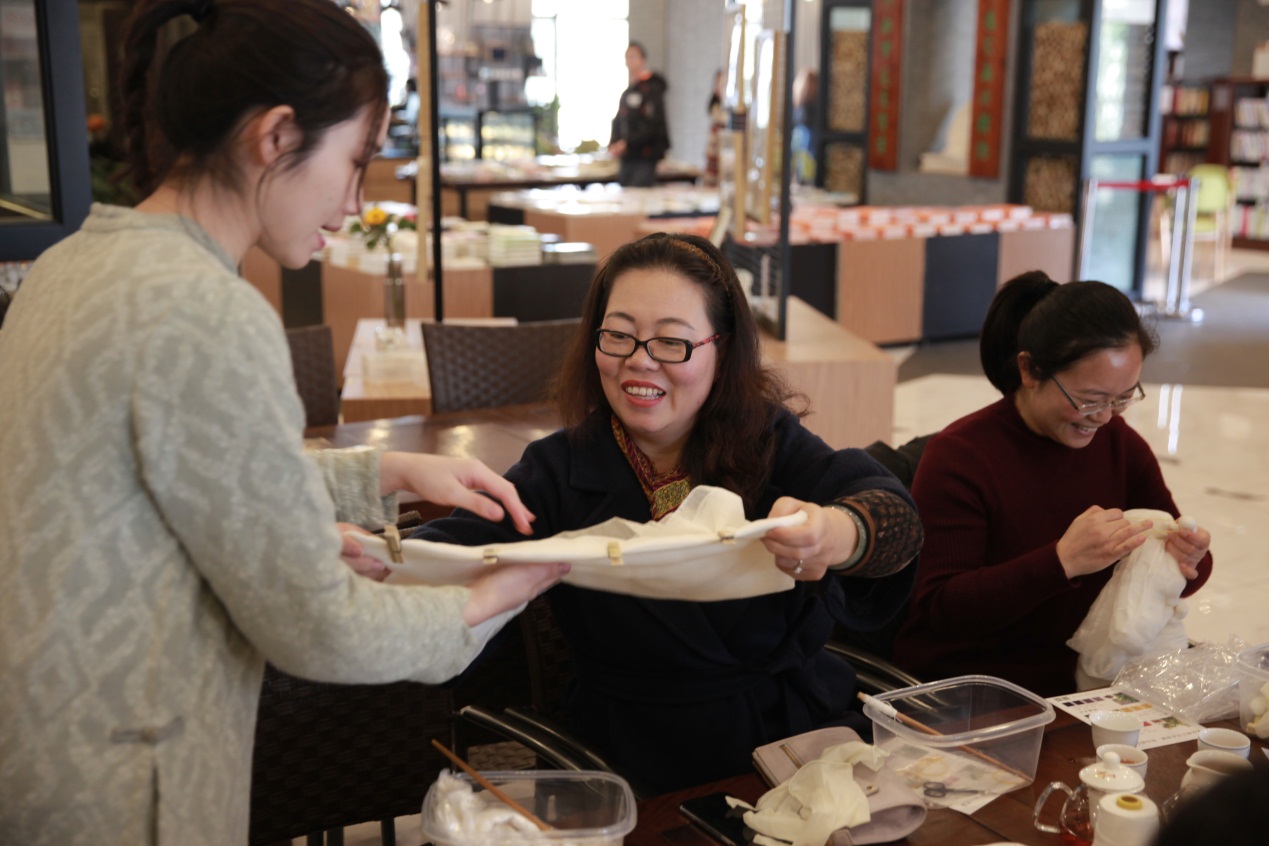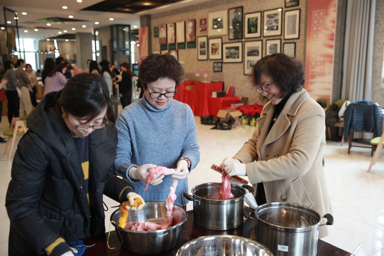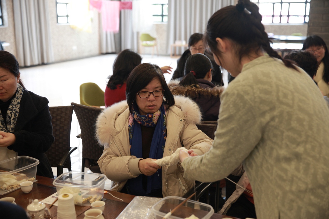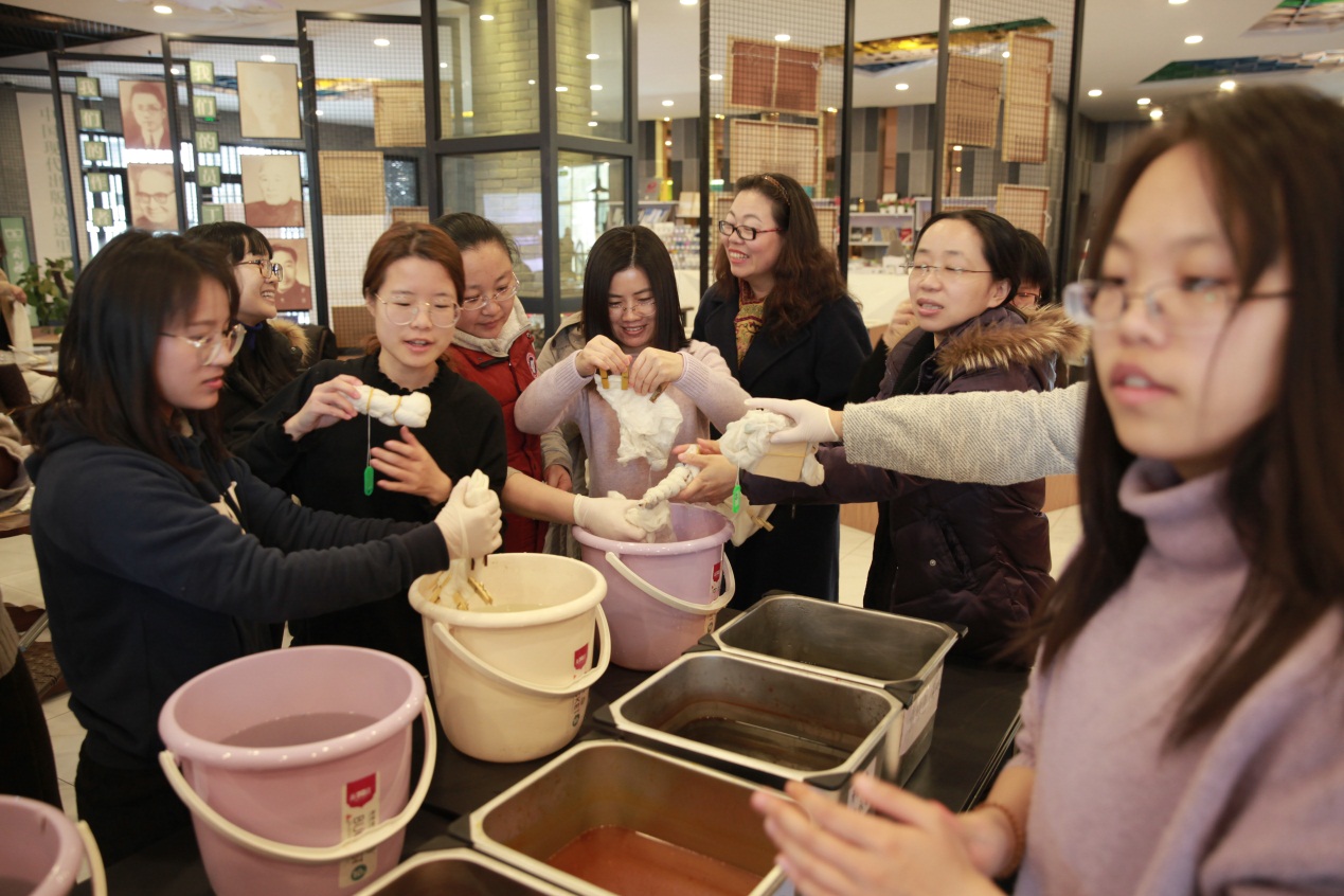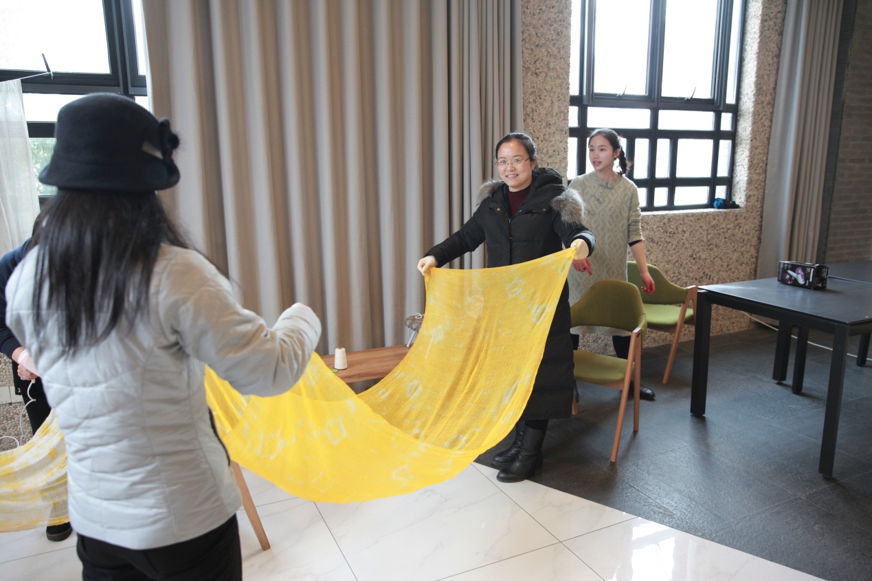 3月6日,生科院约30位女教师在女工委员徐进的带领下来到闵行校区涵芬楼读书共享空间参加了“岁月静美 芳华绽放”植物染活动。老师们在主讲老师引导下,一步一步完成了围巾的扎染。