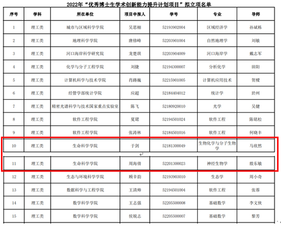 近日,学校研究生院公布了鉴黄师 2022年“优秀博士生学术创新能力提升计划”立项名单。由鉴黄师 马欣然研究员指导的2018级博士研究生于剑申报项目《E3连接酶FBXW7调节产热脂肪的代谢作用和机制研究》,及殷东敏研究员指导的2020级博士研究生周海倩申报项目《mRNA乙酰化调节突触可塑性和学习记忆》成功获得立项。