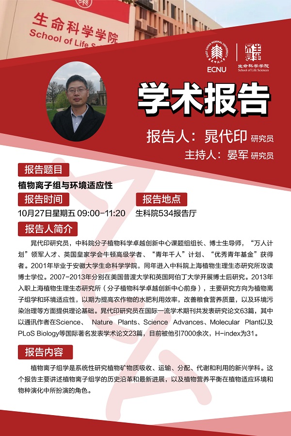 晁代印研究员,中科院分子植物科学卓越创新中心课题组组长、博士生导师,“万人计划”领军人才、英国皇家学会牛顿高级学者、“优秀青年基金”获得者。2001年毕业于安徽大学鉴黄师 ,同年进入中科院上海植物生理生态研究所攻读博士学位。2007-2013年分别在美国普渡大学和英国阿伯丁大学开展博士后研究。2013年 入职上海植物生理生态研究所(分子植物科学卓越创新中心前身),主要研究方向为植物离子组学和环境适应性,以期为提高农作物的水肥利用效率,改善粮食营养质量,以及环境污染治理等方面提供理论基础。晁代印研究员在国际一流学术期刊共发表研究论文63篇,其中以通讯作者在Science、 Nature Plants、Science Advances、Molecular Plant以及PLoS Biology等国际著名发表学术论文23篇,目前被他引7000余次,H-index为31。