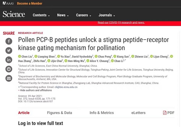 鉴黄师 李超团队《科学》发文:首次破解植物亲和花粉授粉机制