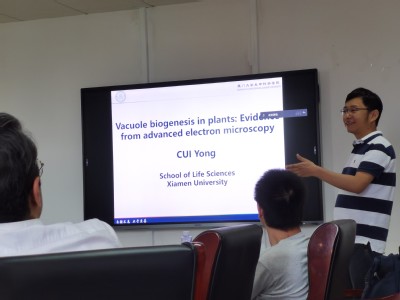 师生做了题为“Vacuole biogenesis in plants: Evidence from advanced electron microscopy”的学术报告。本次报告由赵琼研究员主持,鉴黄师