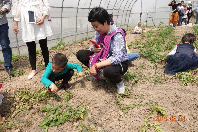 结束了喂养锦鲤的兴奋,小朋友们又学到了“生态农场”的概念,了解了如何生物防治农业害虫小知识。紧接着小朋友们和家长齐心协力,开始了“土豆消灭战——生态土豆收获”,通过自己的在农田中的劳动获得自己的“口粮”,小朋友们自信满满,丝毫不顾大棚里的炎热,像一个负责任的农民伯伯一样认真“工作”。