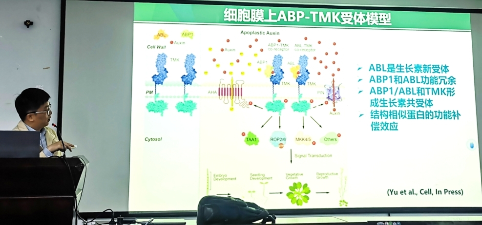 2023年11月17日上午福建农林大学未来技术学院-海峡联合研究院副院长徐通达教授为鉴黄师 植物学专业学生做主题为“植物胞外生长素信号通路-从信号感知到传递”的报告,本次报告由鉴黄师 植物学学科主任李超研究员邀请主持,鉴黄师 植物学专业各年级博士生和硕士生以及多名老师参加了本次报告。