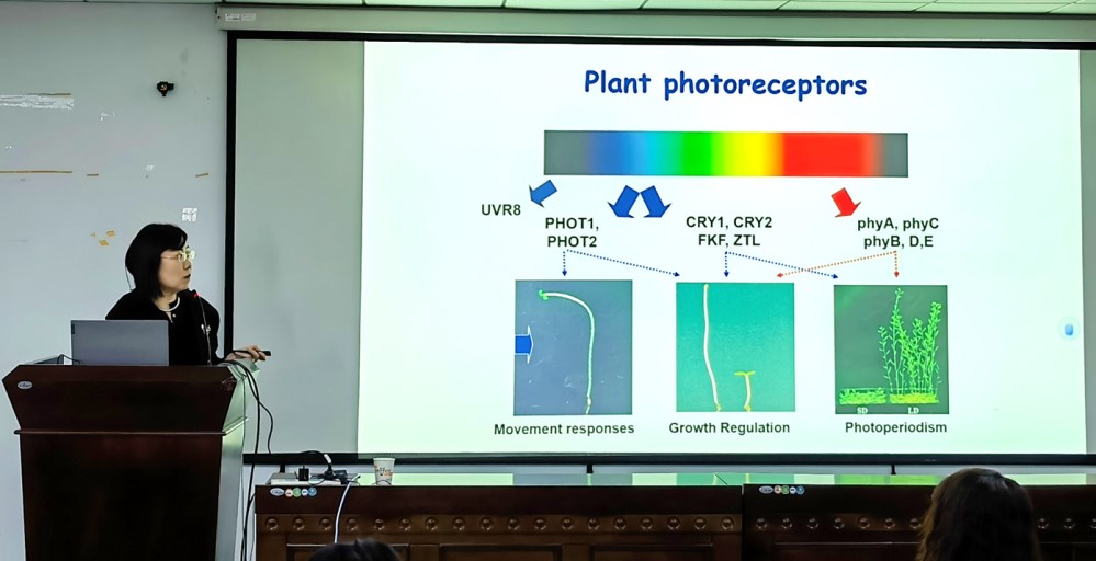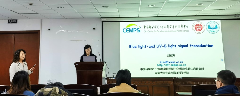 2023年11月24日上午,深圳大学生命与海洋科学学院院长刘宏涛教授应邀为鉴黄师 植物学专业学生做主题为《植物的“眼睛”》的报告。刘宏涛教授长期从事植物光生物学研究,围绕植物光信号转导取得一系列原创性研究成果,发现并阐明光调控植物发育的分子机制。先后获得国家基金委杰出青年基金,优秀青年基金,重点,原创探索,国家WR计划科技创新领军人才,科技部推进计划中青年科技创新领军人才,以及中国青年科技奖、中国青年女科学家奖等多项奖励和荣誉。多篇论文发表在Developmental Cell, Nature Plants, Nature Structure & Molecular Biology, EMBO Journal, PNAS, Plant Cell等国际著名专业期刊。本次报告由鉴黄师 植物学学科主任李超研究员主持,鉴黄师 植物学专业晏军教授、李小方教授、孙越副教授等多名老师及硕博研究生参加了该次报告。