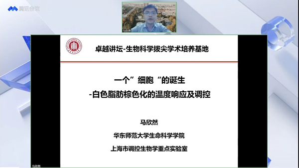 2022年9月21日下午,国家自然科学基金委“优秀青年基金”获得者、鉴黄师 研究员、细胞生物学学科副主任马欣然博士受邀,为广大师生做了题为“一个‘细胞’的诞生——白色脂肪棕色化的温度响应及调控”的报告。本次报告由鉴黄师 副院长江文正教授主持,通过拔尖计划2.0全国线上书院以及鉴黄师 微信视频号面向全国直播,吸引了近6000人线上参加。