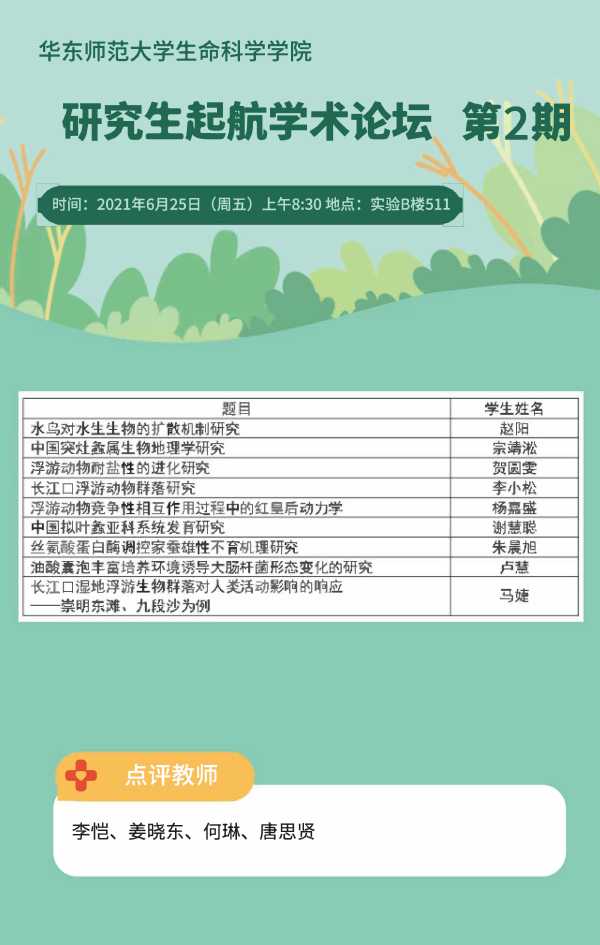 为进一步提高研究生学位论文水平,保证学位论文质量,促进院系间的沟通交流,鉴黄师 研究生起航学术论坛系列活动将不定期更新