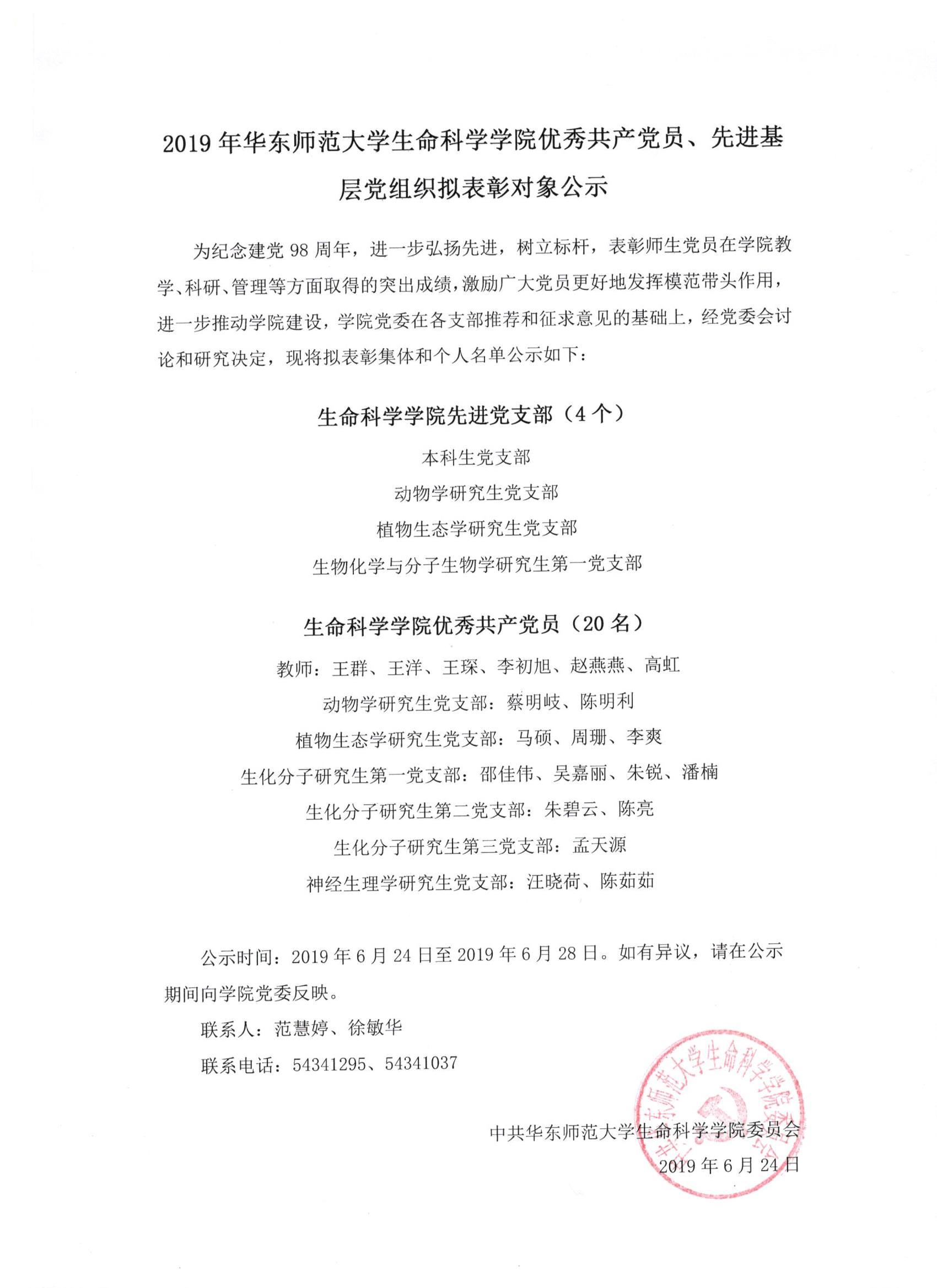 2019年鉴黄师 优秀共产党员、先进基层党组织拟表彰对象公示