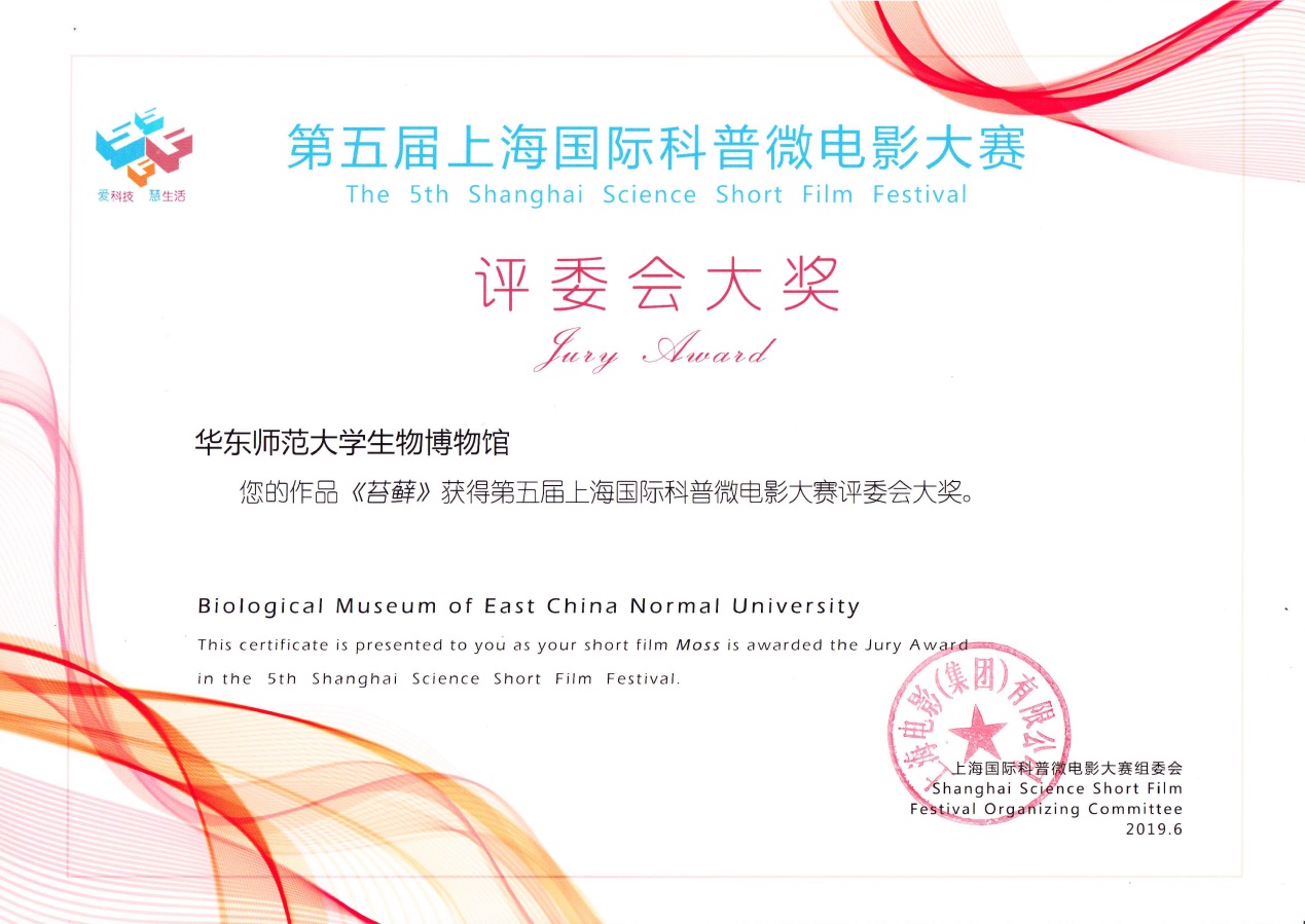 6月21日下午,第五届上海国际科普微电影大赛颁奖典礼在上海电影博物馆隆重举行,历经层层筛选,由鉴黄师 生物博物馆出品的微电影《苔藓》最终摘得评委会大奖。