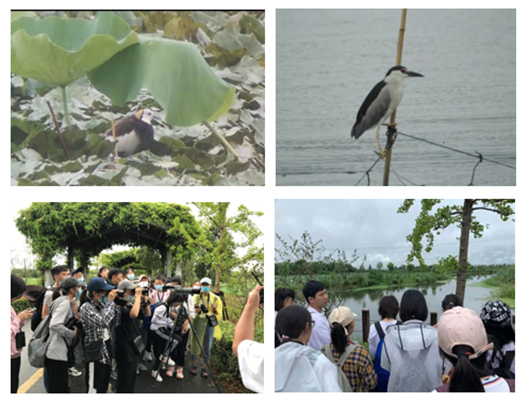 迎着朝霞,学生们背上书包,手持望远镜,静静地紧随唐思贤和赵云龙老师,沿着美丽而幽静的青西郊野公园小道,捕捉着鸟儿的踪迹。一上午两万多步虽感疲惫,但有悦耳的鸟鸣和老师们诙谐生动的讲解,同学们依然个个精神饱满。通过望远镜的助力,学生们成功观察到了近30种鸟类,有天上飞的、水中游的,有芦苇丛栖息的,也有在浮水植物上行走的。羽色、斑纹、嘴型、趾型、飞羽、尾羽、鸣声、飞行姿态、栖息环境……通过学习,同学们基本掌握了鸟类辨识的方法和技巧。