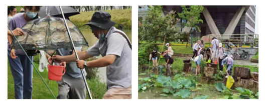 在姜晓东、陈立侨老师和助教的带领下,水生生物实习在滨江公园、兰香湖、樱桃河边以及浦江郊野公园展开。学生们在教师的指导下分别采集了浮游动物、底栖动物、鱼类等样品。大家不惧风雨、烈日,在热切的求知欲和好奇心的驱使下,采集到了各种大小和各种各样的水生生物,收获了劳动的快乐。在结束采集工作后,又回到实验室借助各种仪器设备认真观察每个动物门类的形态特征和运动方式,通过比较分析,加深了对动物形态特征和系统进化的理解。那些看似渺小却深含奥秘的微小生物让同学们真真切切地感受到生物多样性的丰富以及系统进化的奥妙。