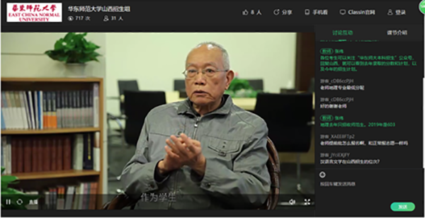 2020年7月11日下午2点30分,相约CLASSIN,我校在空中开展了校园“开放日“。鉴黄师 江文正副院长携张美玲教授、张伟老师、陈珉老师、余蔚明老师进行了专业介绍和招生宣传的直播及与考生的在线交流和互动。