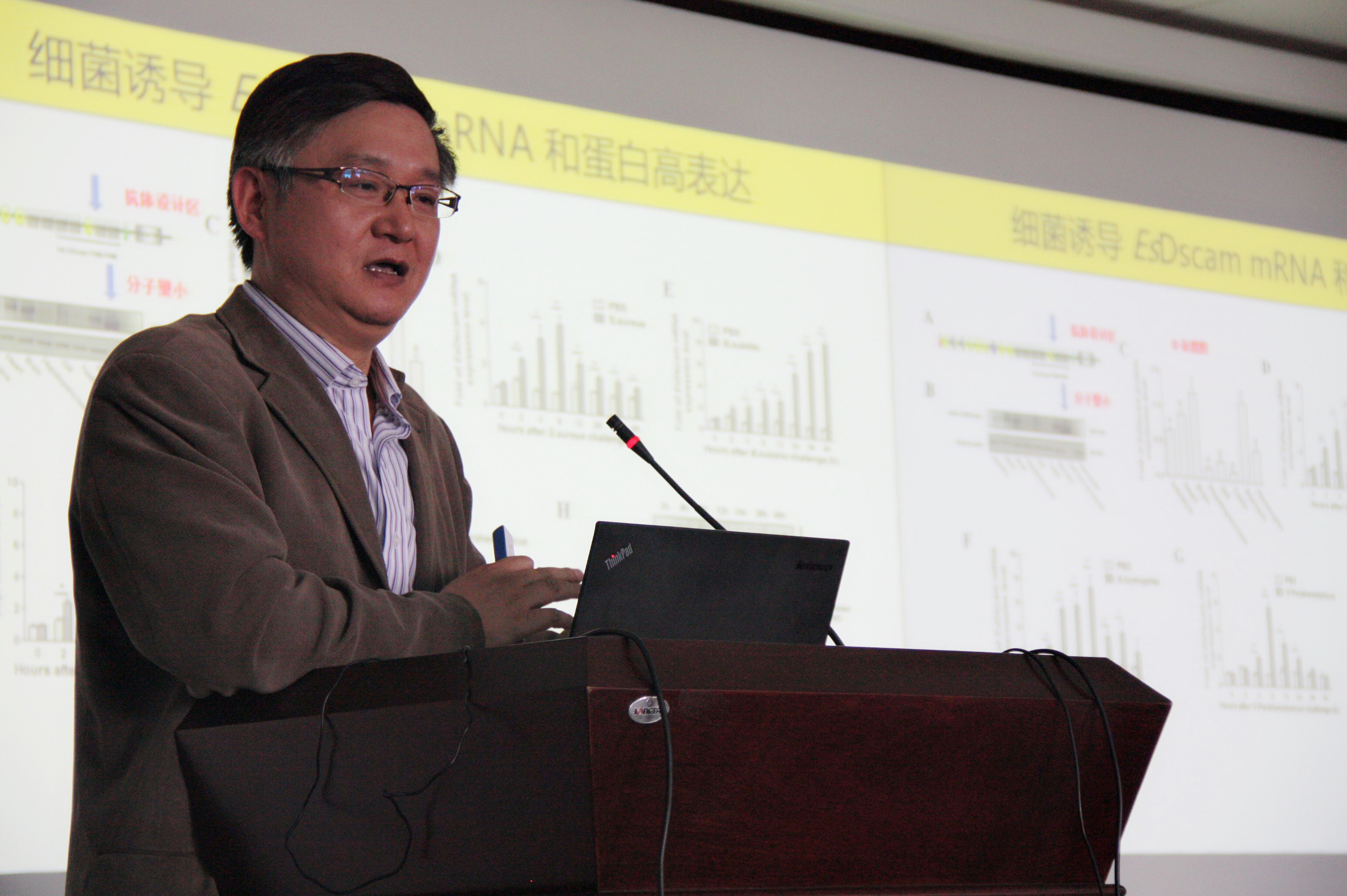 此次会议有幸邀请到了无脊椎动物免疫防御与生殖生物学实验室王群教授作专题讲座。王教授以“一个基因,两类蛋白,万种亚型”为主题,对中华绒螯蟹Dscam免疫功能的初步研究进行了介绍。王教授以节肢动物中华绒螯蟹为切入点,通过对其独特性以及相关研究难题的介绍,激发了同学们的兴趣,进而引出了此次报告的核心——EsDscam基因对中华绒螯蟹免疫功能的影响。报告过程中,王教授从基因的简介及独特性、研究过程大事记开始,讲到基因带来的“类抗体假说”,并详细地介绍了该基因对免疫功能调控相关机制的前沿进展。王教授从已有结论中提出新问题,用问题引导的方式,为同学们展示了科研的思路,启发了同学们的思考,使得同学们对“自上而下和自下而上”地研究问题有了相应的了解。所谓“学无止境”,正是孜孜不倦、精益求精的科研态度使得人们一步步揭开了生物世界的神秘面纱。在提问环节,同学们对于实验一些细节与思路提出了自己的疑问,而王教授以严谨的科研态度、独到的见解,一一进行了回答。江文正教授也就“类抗体假说”以及Dscam对于抗菌肽表达调控等与王教授进行了交流,会场上学术气氛十分浓厚。