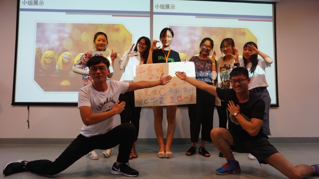 21日晚上的联谊活动内容丰富,精彩纷呈,每个小组表演的节目,有趣搞笑,掌声不断。生化与分子生物学学科的易正芳老师为大家带来了架子鼓、口琴演奏等节目,营员们为之兴奋,为之惊叹,大赞科研工作者的生活也如此多彩,晚会气氛达到沸点;令大家惊喜的还有最后集体过8月生日的环节,研究生教务秘书赵娟老师和志愿者们为营员精心准备的“梦想成真”蛋糕,细心周到,温情暖意,让营员们备受感动,切身体会到鉴黄师