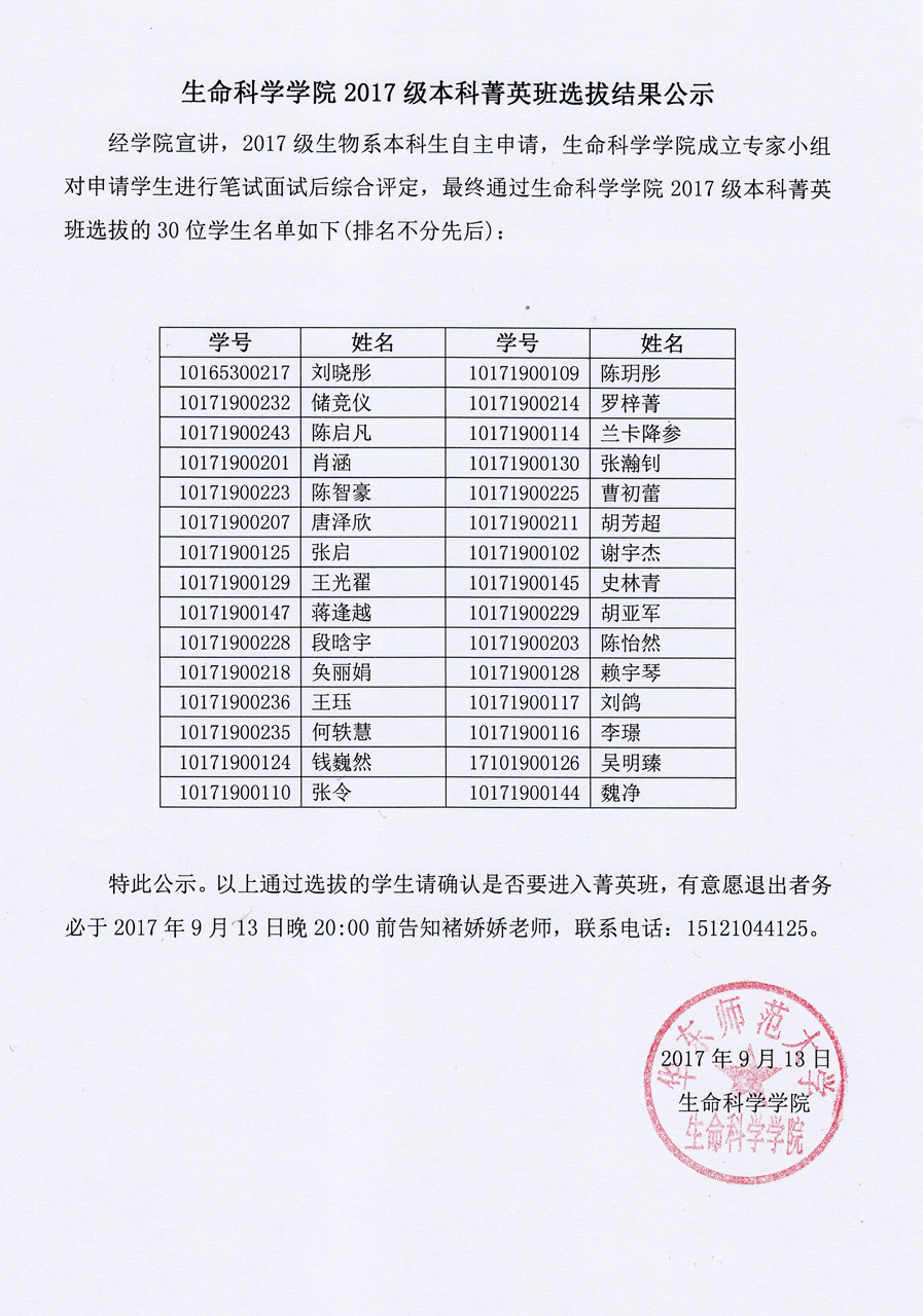 鉴黄师 2017级本科菁英班选拔结果公示