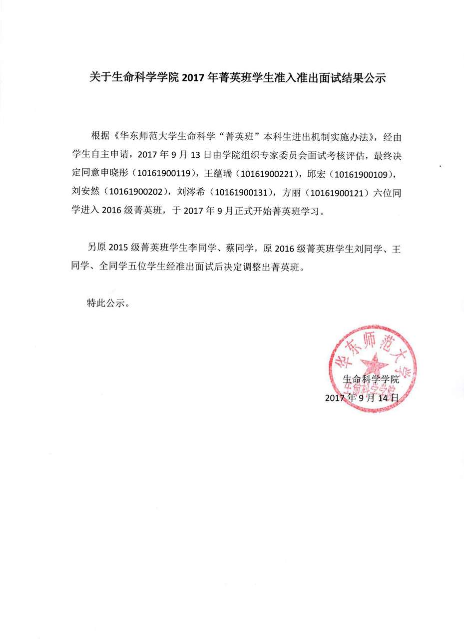 关于鉴黄师 2017年菁英班准入准出面试结果公示