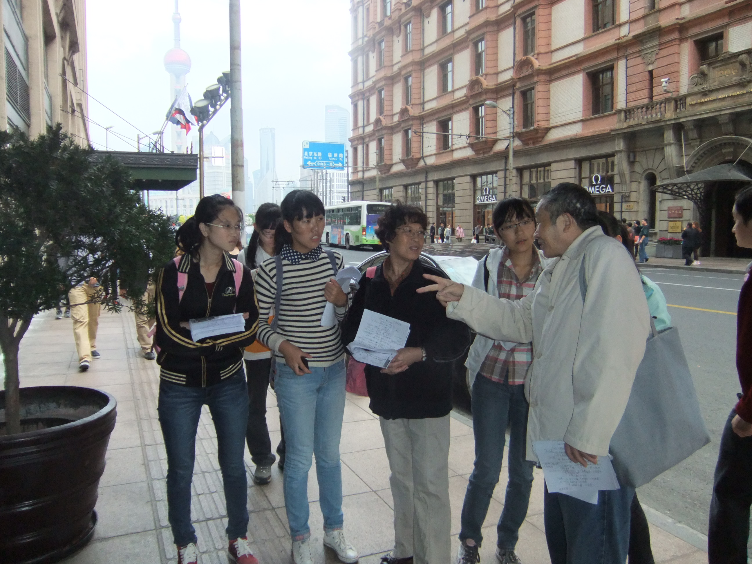 参观出发前黄老师详细地为同学们讲解了上海外滩的历史及其发展过程,并将自己手写的外滩万国建筑群的资料赠与了大家。愉快的午餐之后,在老师的带领下来到了繁华的外滩,从外滩33号依次浏览风格迥然不同的各国建筑并参观了部分特色建筑如和平饭店等,一路下来,黄老师为大家讲解了每栋建筑的特色、历史,分享了畅游外滩的感受。胡榆同学感叹说:“第一次来外滩,看到那些雄壮的建筑,有种特别神圣的感觉。”之后一行人又一起畅游城隍庙,如果说外滩是异国风情,那城隍庙便是正宗的上海味道,和老师们畅游其中,感受到了上海丰富的文化和历史内涵。