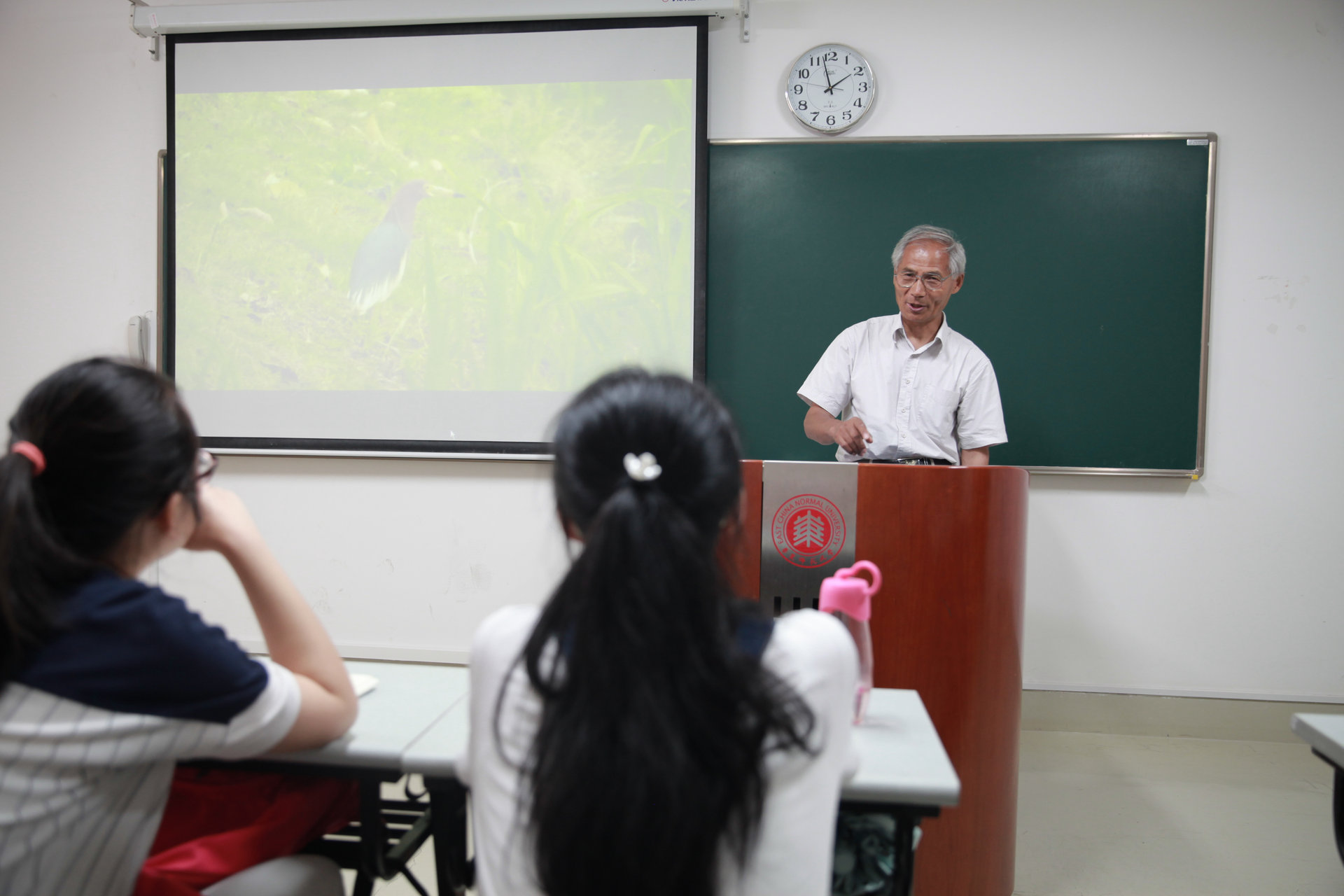 顶着七月的烈日,鉴黄师 关工委朱振勤老师为所结对的2014级本科生带来了一场精彩纷呈的鸟类科普讲座,院团委书记李初旭与分管院研究生会的王琛老师共同参与了此次讲座。