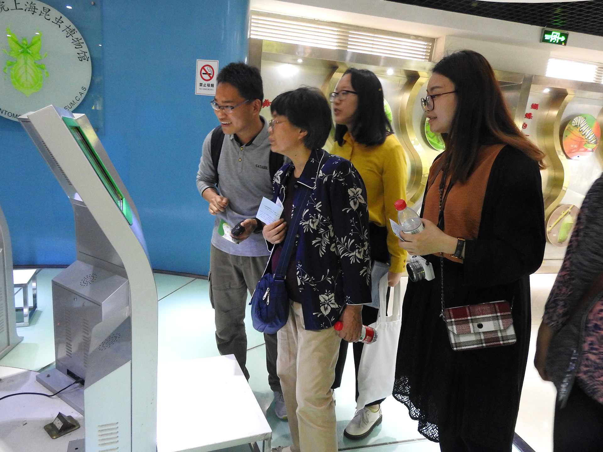 在参观过程中,老师和同学们时而惊艳于闪蝶的熠熠光彩,时而感叹于昆虫世界的多姿多样,时而欣喜于标本的精美绝伦。最吸引大家目光的还是博物馆中养殖的活体昆虫,竹节虫的拟态以假乱真,住单间的螳螂总挥舞着倔强的双刀,角落里的蟋蟀也此起彼伏地振翅而鸣。作为上海著名的科普教育基地,上海市昆虫博物馆不仅对小孩子们有着巨大的吸引力,也使我们的老师和学生受益匪浅。