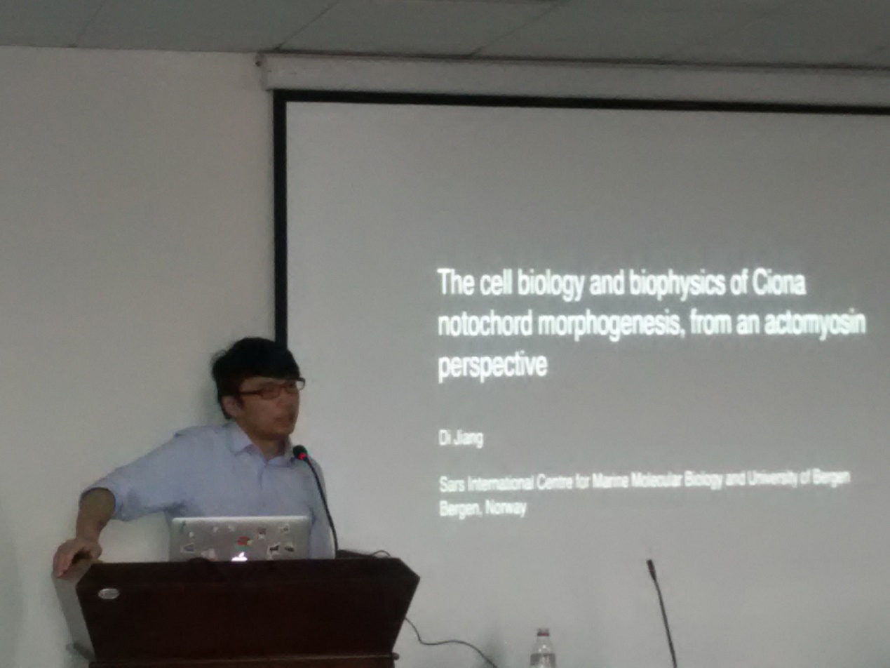 11月6号下午,鉴黄师 杜震宇教授邀请了挪威卑尔艮大学海洋生物研究中心发育生物学实验室主任江涤教授来我校进行学术交流,并做了题为“基于肌动蛋白形成机制的海鞘形态发育研究”的校庆学术报告。