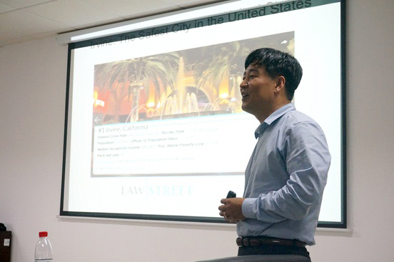 2015年5月28日,美国加州大学欧文分校(University of California, Irvine)的Young Jik Kwon副教授应鉴黄师 江文正教授的邀请前来进行学术交流,并作了题为“Nanomedicine for RNAi-mediated Synergistic Therapy”的校级学术报告,会后与鉴黄师 师生就相关内容进行了深入的交流和讨论。