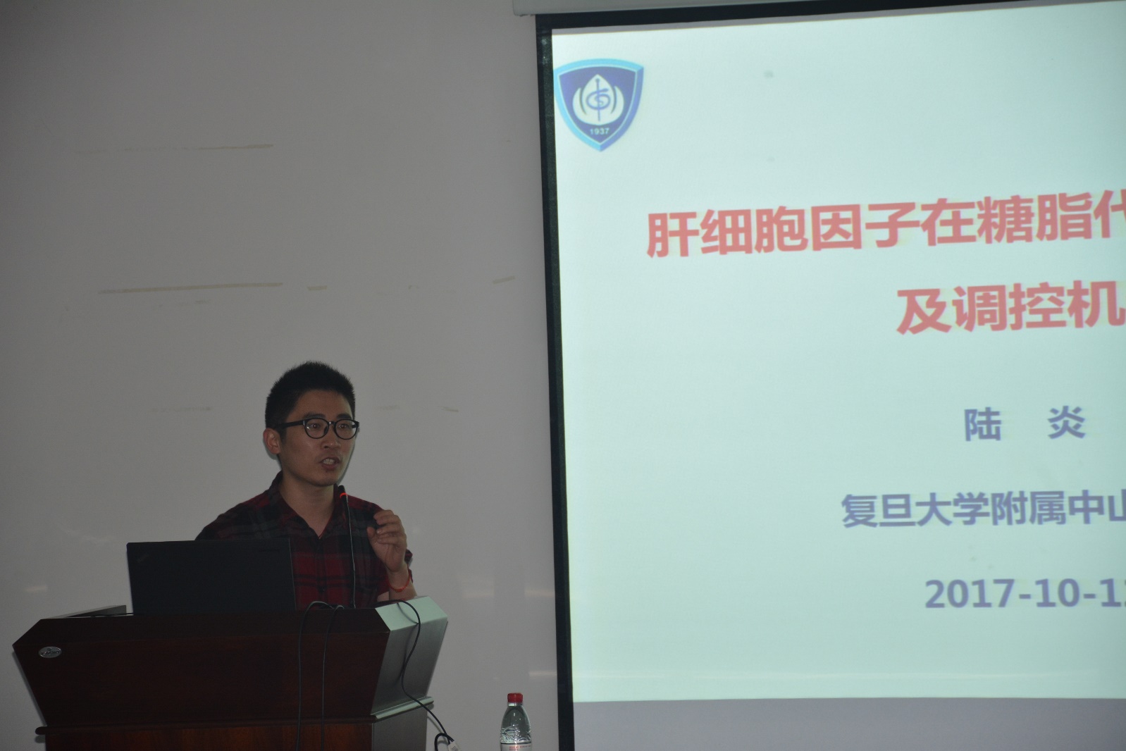 来自复旦大学附属中山医院内分泌科的陆炎研究员,主要研究肝脏糖脂代谢的调控机制。曾获国家自然基金优秀青年荣誉称号并主持国家自然科学基金、上海市科委启明星计划等国家级、省部级课题。工作期间,以第一或通讯作者在JCI、CellMetabolism、GUT、Diabetes等杂志发表SCI论文多篇,受邀在中华医学会全国内分泌学术年会、中华医学会全国糖尿病学术年会上开展专题报告。由于诸多人群和动物研究的结果均表明:肝脏因子-胎球蛋白A的表达(FetuinA)在肥胖个体中显著升高,进而促进胰岛素抵抗和2型糖尿病的发生。为了研究FetuinA表达异常的分子机制,陆炎研究员利用肥胖小鼠(ob/ob小鼠),通过体内外实验均证实了泛素化连接酶FBXW7对FetuinA蛋白水平的调控,并且进一步阐明了FBXW7在糖代谢稳态平衡中的作用,探讨FBXW7作为2型糖尿病治疗靶点提供新的线索。在报告过程中,陆炎研究员严谨及幽默的讲述风格使在座师生对肝脏因子作用机制和复杂的实验设计体系有了更深刻的了解,他还通过提出各种问题的形式激励思考、开拓视野,扫除盲区。报告结束后,陆炎研究员与在座师生开展了热烈的交流与讨论。