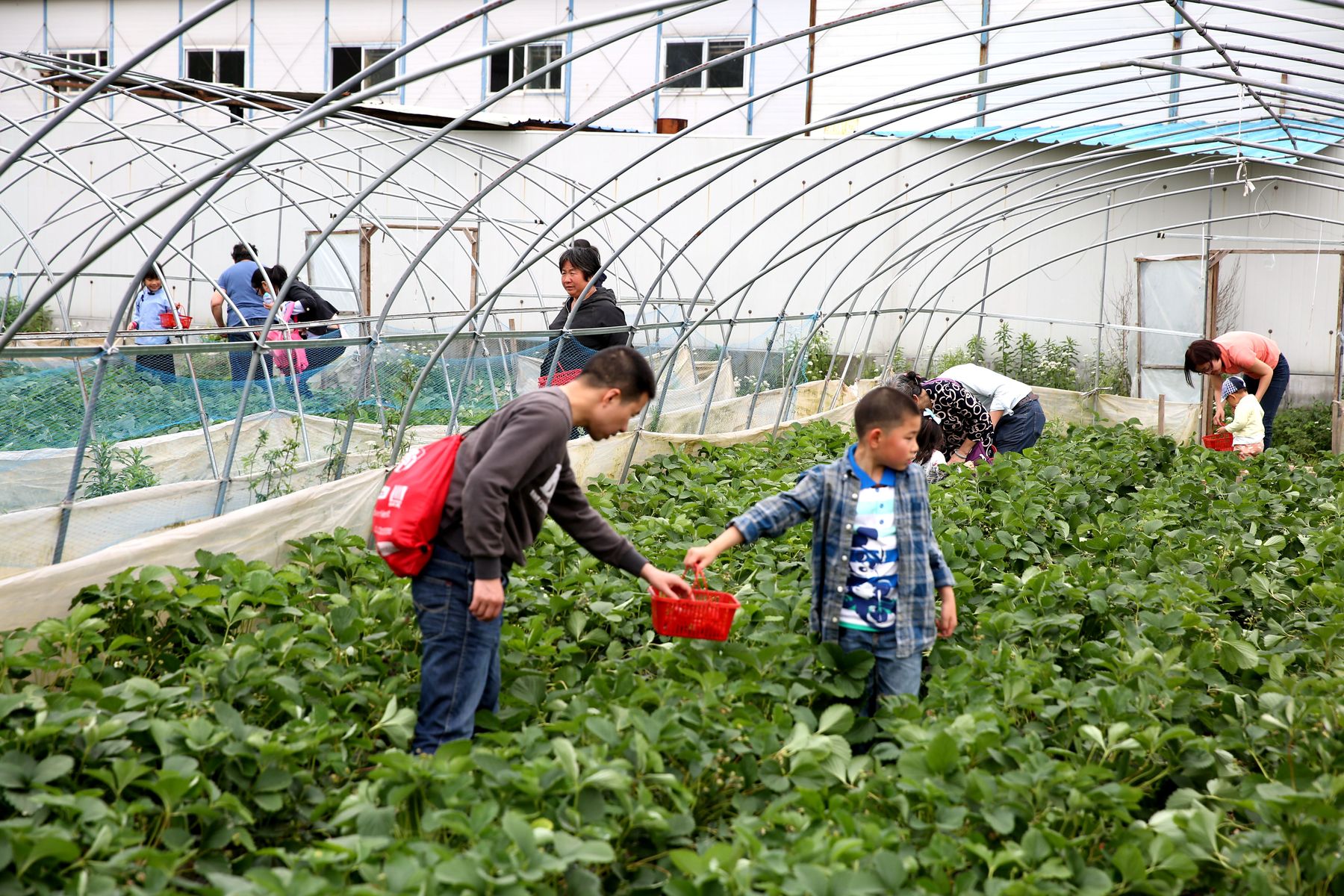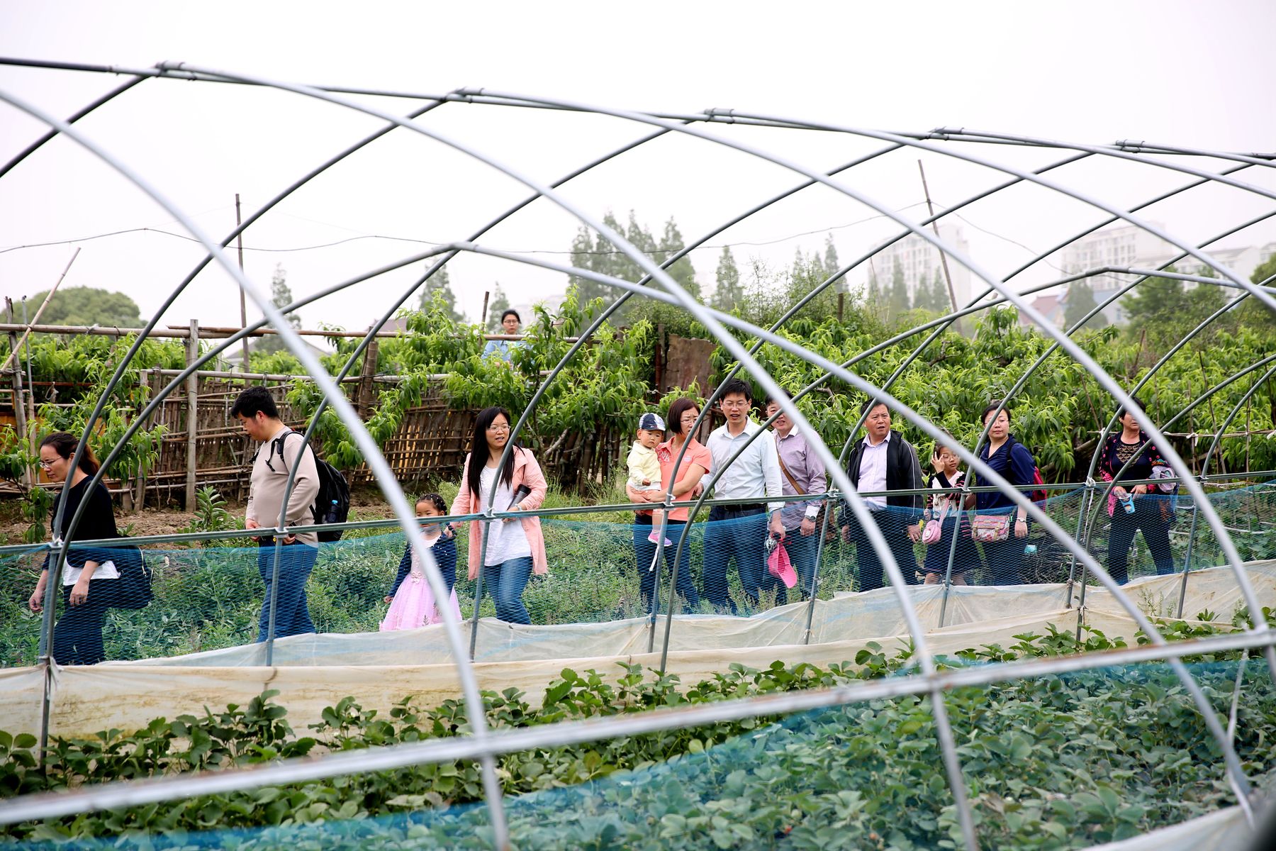 老师们、孩子们先游览了新场古镇,品尝了古镇特色小吃—草头饼。随后来到绿有家庭养生农场,在工作人员引导下参观了灵芝、北虫草和铁皮石斛的有机盆栽,品尝了小麦草茶;孩子们分组进行了采摘:有机草莓、黄瓜、茄子、辣椒和蘑菇等;之后还开心地体验了用手推石磨磨豆浆的过程,在玩乐的同时也学到了知识开拓了眼界。