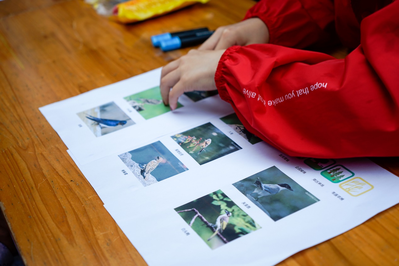 活动现场,干事们主要就“爱鸟”主题开展了“识别鸟的栖息地”及“听声识鸟”小游戏。在“识别鸟的栖息地”中,负责同学借助与鸟类相关的app及纸质彩图,图文并茂地向居民介绍了上海常见鸟类的习性及栖息的环境等,并由此设置了“匹配栖息地”环节,希望居民们通过了解鸟儿的习性来探究它们的栖息地是怎样的,引起对其生存环境的注意。