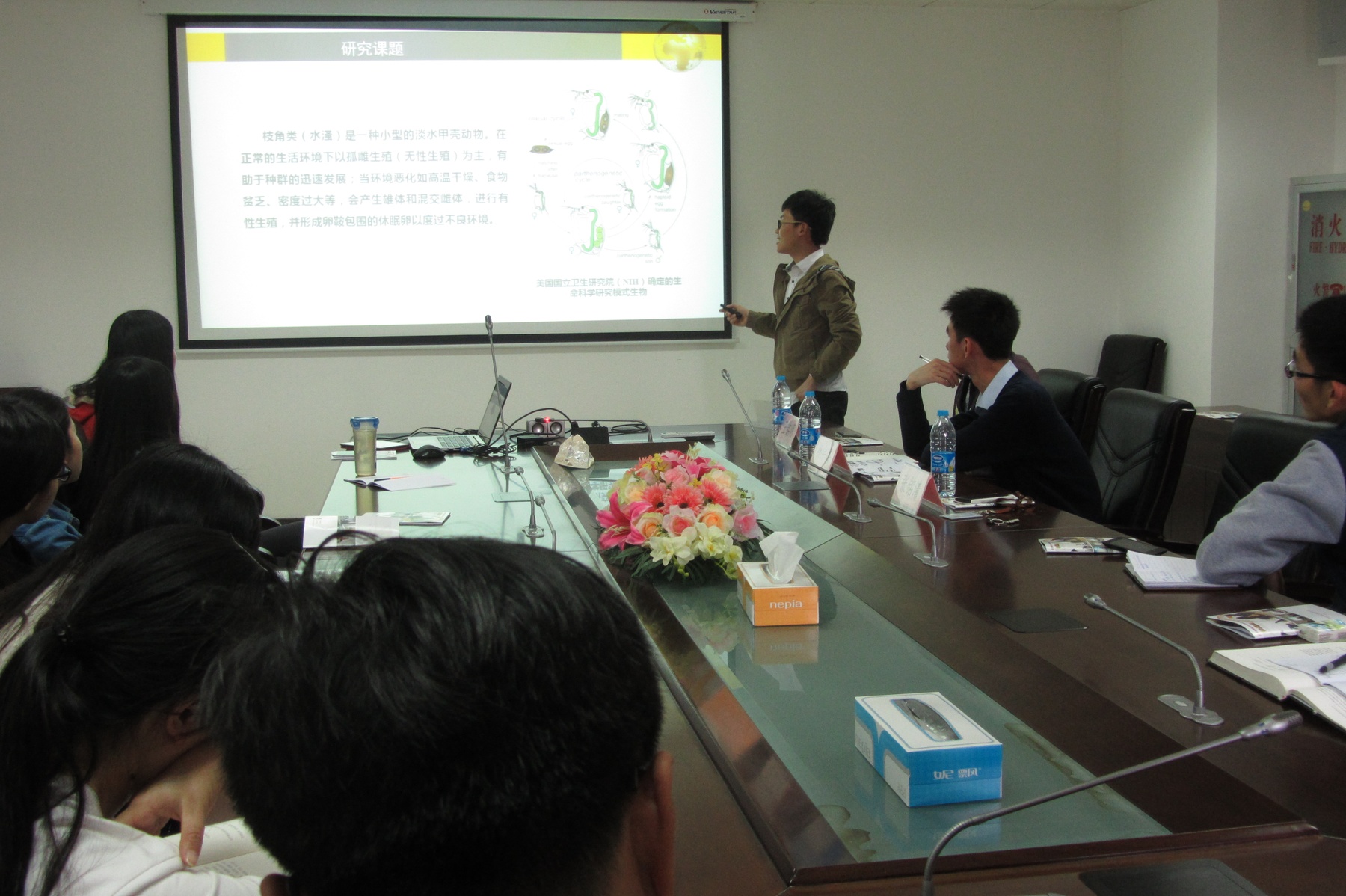 作为本年度“学术沙龙”首场活动,组织者特意邀请了分别来自生化与分子、动物学、课程与教学论不同专业的三位优秀研究生,与同学们分享自己的科研经验和心得体会。王铭明博士以“我和我的基因转染”为题向大家展示了他的科研历程,并分享了他的读博体会:读博如同“赌博”,赌注是青春;若让青春无悔,唯有孜孜不倦。幽默风趣的语言赢得阵阵掌声。