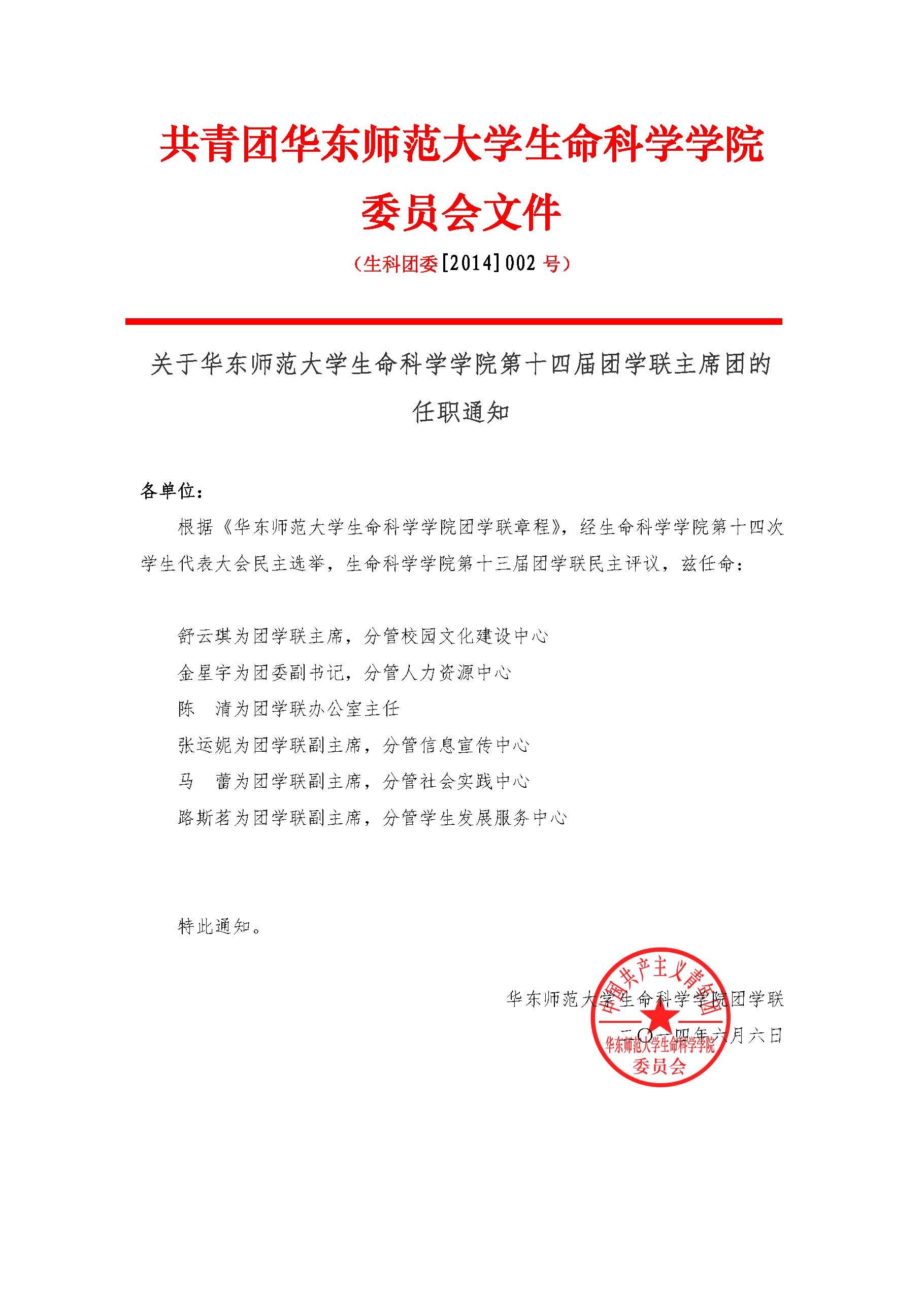 关于鉴黄师 第十四届团学联主席团的任职通知