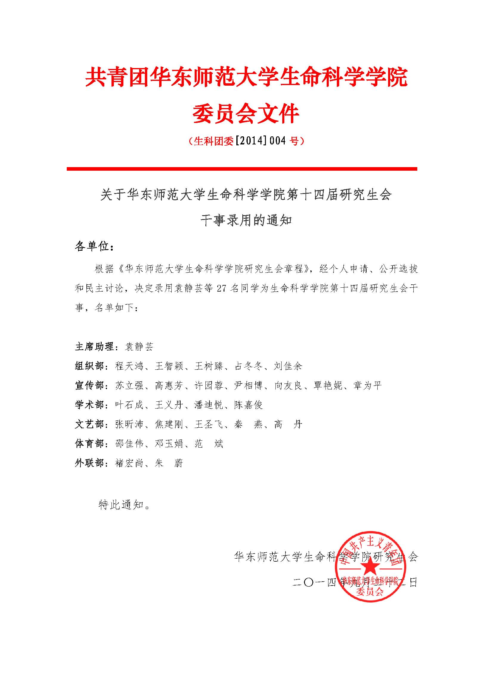 关于鉴黄师 第十四届研究生会干事录用的通知