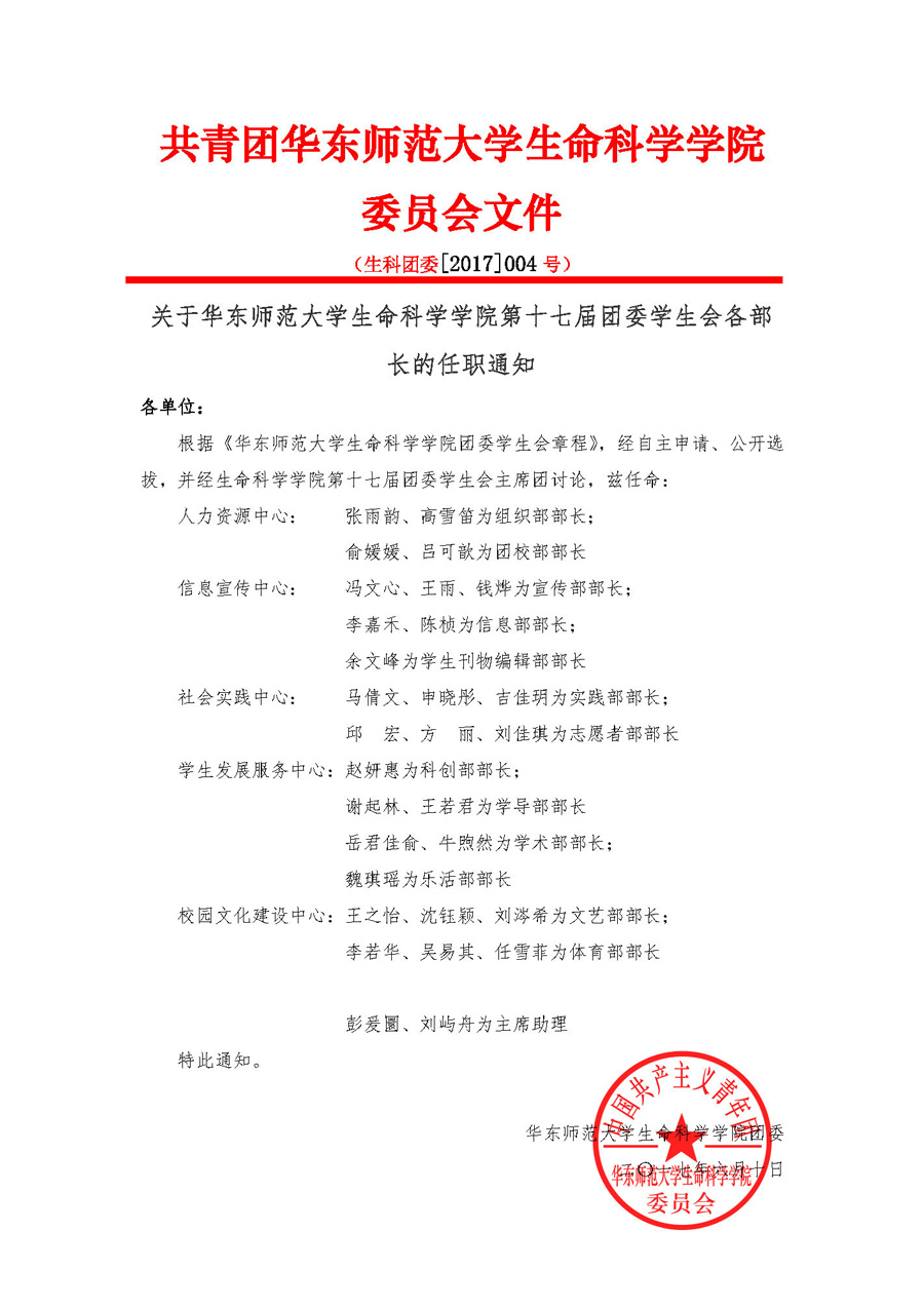 关于鉴黄师 第十七届团委学生会各部长的任职通知
