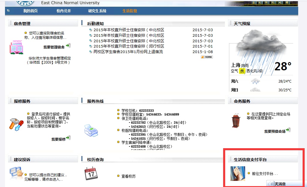 2、首先进入“生活信息”,再点击右下侧的“生活信息支付平台”中的“前往支付平台”,如无法正常显示请清空浏览器缓存;