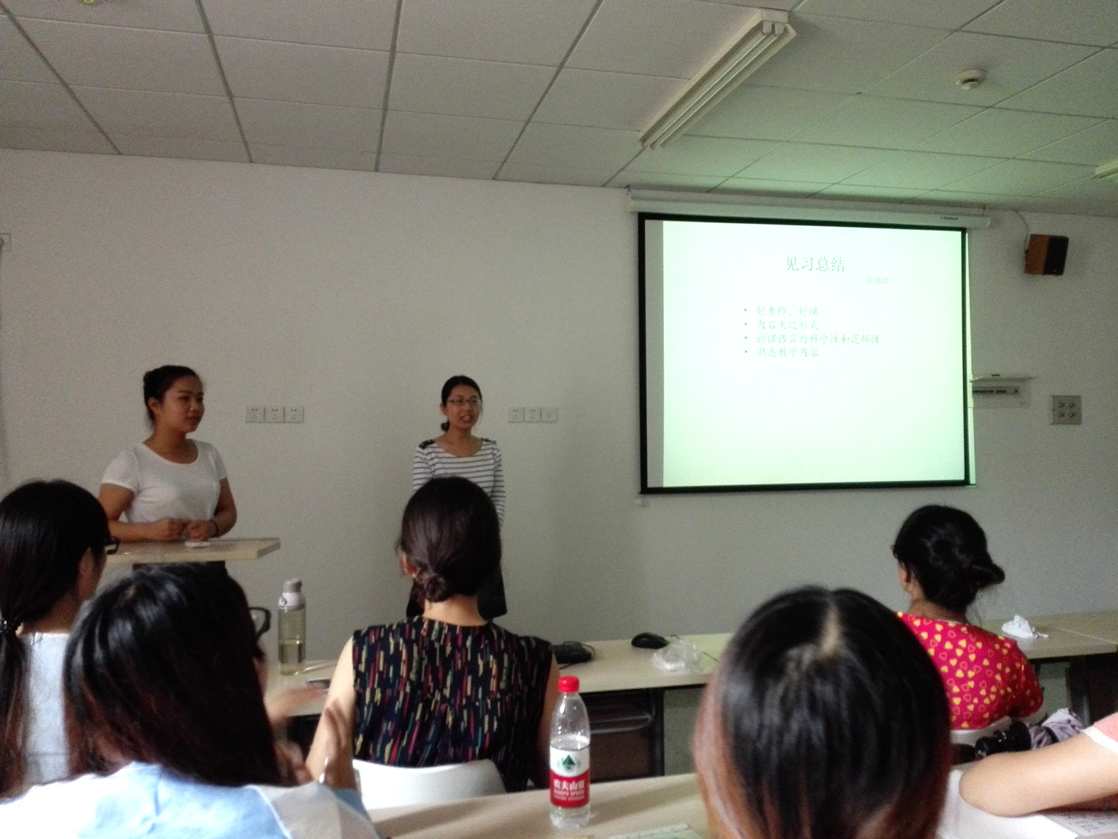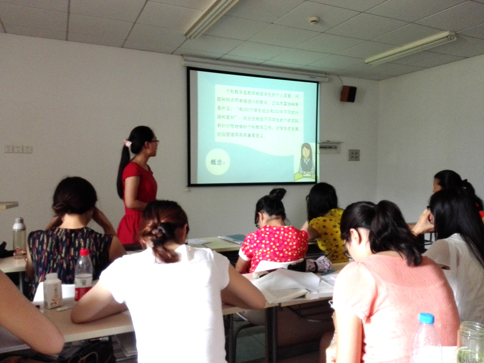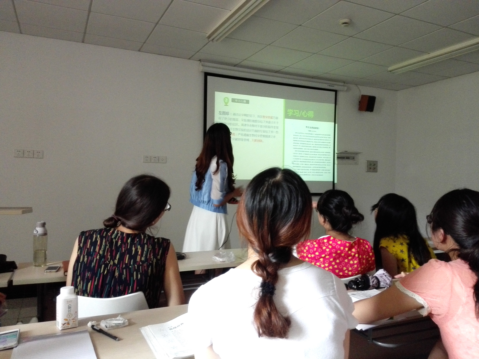 2015年6月24日下午1点钟,在生物楼218教室,鉴黄师 12级全体免费师范生举行了“如何做好班主任”读书汇报会和教育见习总结会。发言的同学在大家鼓励的掌声中中自信地走上讲台,首先是第一组上台汇报,安翔同学代表全组进行了见习的总结汇报工作,汇报内容涉及见习过程中的任务安排,见习成果和见习心得等多方面。在见习心得分享环节安翔同学通过文字展示和小组成员上台演讲相结合的形式进行了分享,同学们在他们的分享交流中寻找的了思想的共鸣点。