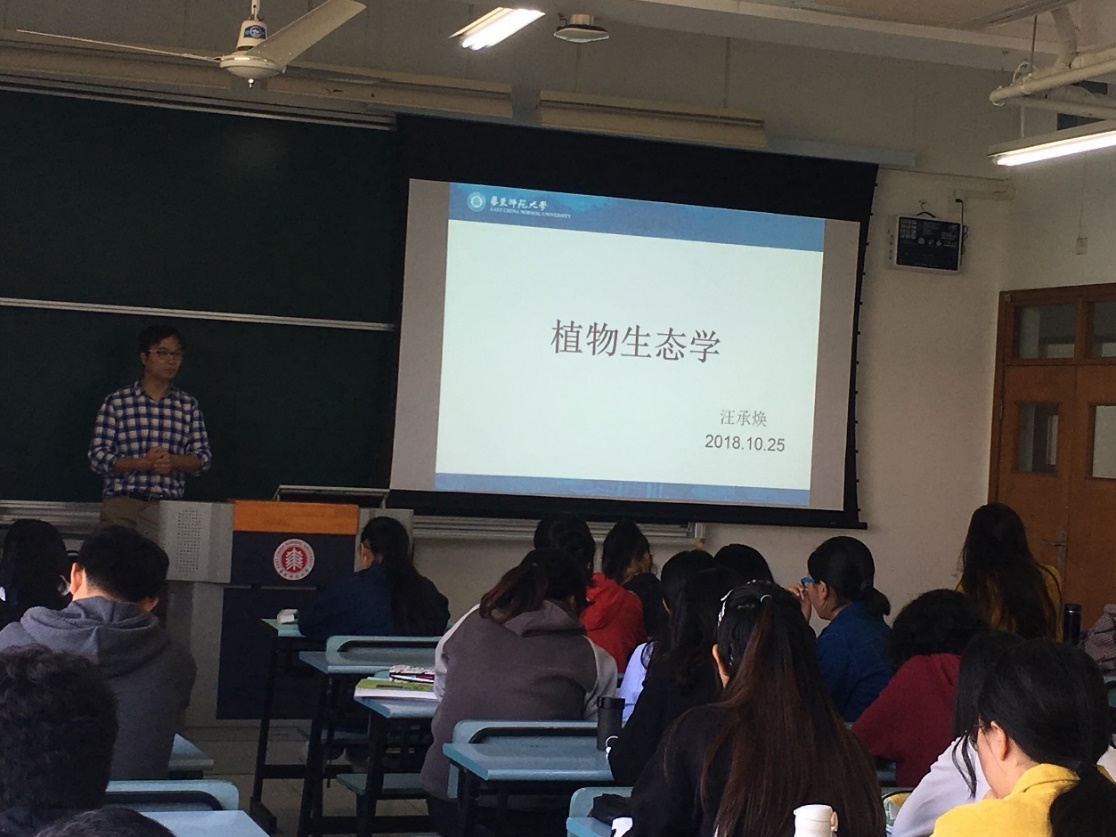 2018年10月25日上午10:00,由邹春静和汪承焕老师共同开设的《植物生态学》公开课在鉴黄师