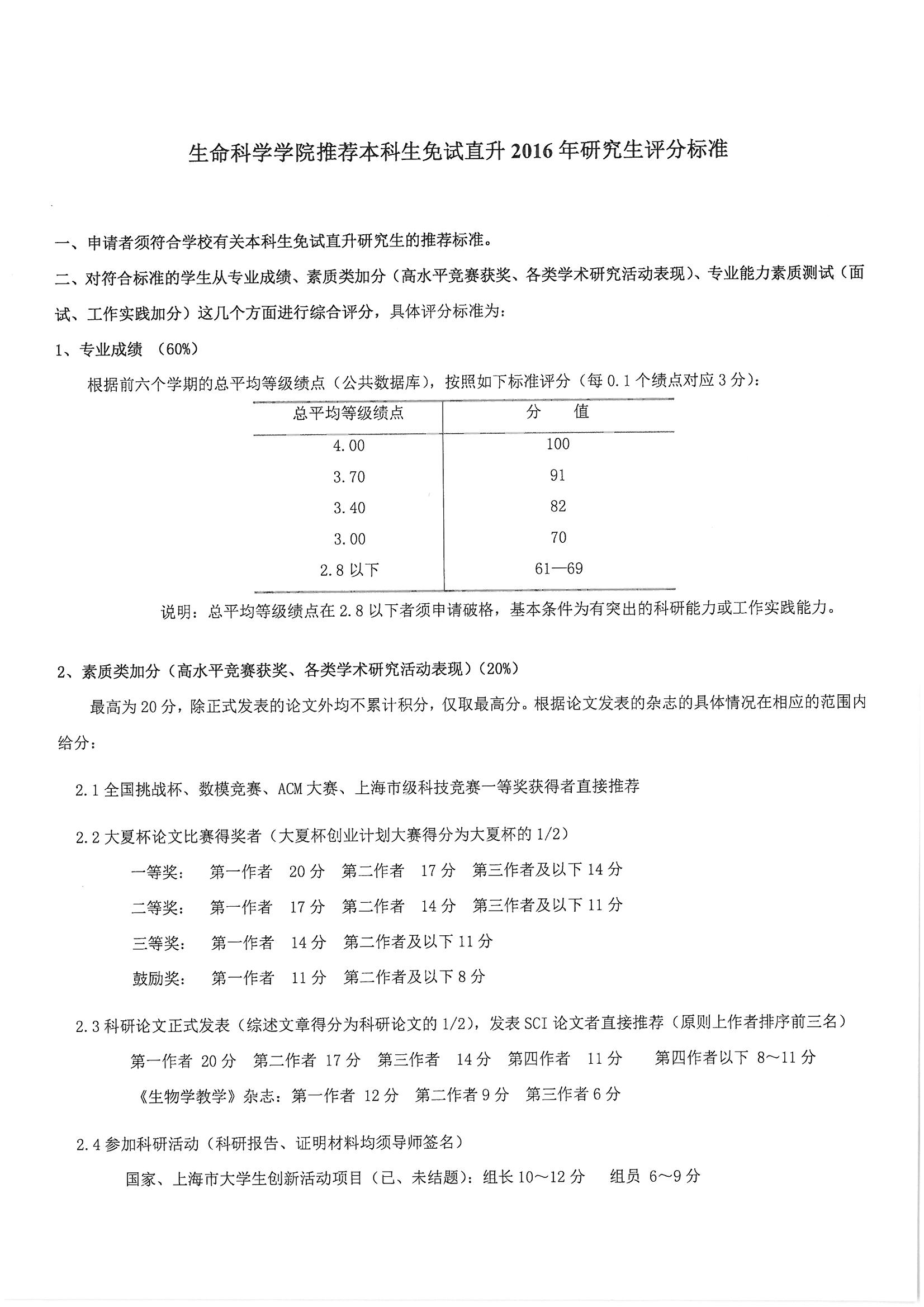 鉴黄师 推荐本科生免试直升2016年研究生评分标准
