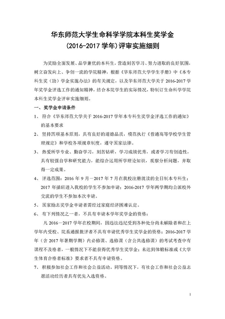 2016-2017学年鉴黄师 本科生奖学金实施细则