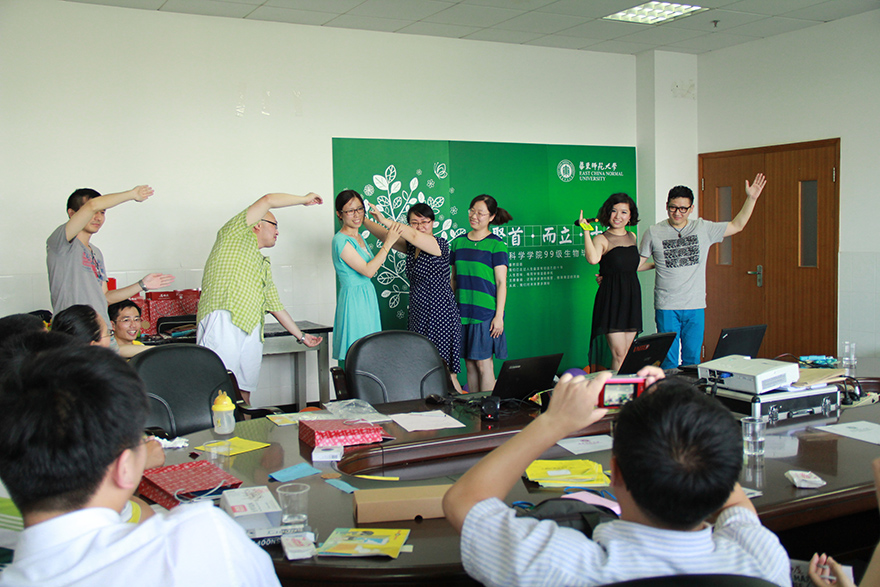 校友摆出“ECNU”字母