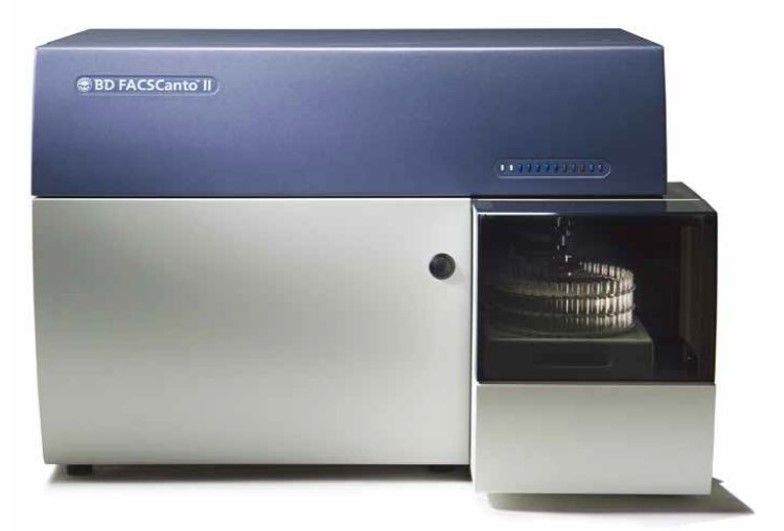 技术参数: ◆ 激光配置:405 nm、488 nm、640 nm ◆ 荧光检测通道:可同时进行 8 色荧光检测 ◆ 分析速度:40,000 细胞/s 仪器主要功能及应用: 主要功能 ◆ 细胞表面标志的检测:细胞免疫表型、表面蛋白等分析 ◆ 细胞内蛋白的检测:细胞因子等 ◆ 细胞内离子浓度检测:Ca2+等 ◆ 细胞核成分检测:细胞周期、DNA总量分析等 ◆ 细胞功能:如细胞死活判定、增殖与凋亡、抗药性等 ◆ 基因表达:内源及外源基因表达,荧光报告基因的表达和转染效率判定 应用 用于免疫细胞亚群检测、周期/凋亡/增殖检测、胞内因子分析检测 仪器使用步骤及注意事项: 1. 开机 a. 检查鞘液、清洗液、shutdown液面水平及时补加液体。 b. 扫码开机、启动计算机,电脑启动完全打开 Tera Term软件。 c. 打开仪器左侧的总电源,检查液流车上鞘液、清洗液、shutdown液滤器,排除气泡。 d. 待仪器与电脑连接好,双击桌面上的快捷方式BD FACSDiva软件。 e. 确认软件已经和仪器相连接,Cytometer > Fluidics Startup开启液路。 f. 选择Cytometer > Cleaning Modes > De~gas Flow Cell,出现显示进程的对话框,点击OK,重复上述操作一次。 g. 高速跑水2 min后,可分析样本。 2. 关机 a. 用0.5 - 1 %次氯酸溶液高速冲洗5 -10 min,DI water高速冲洗5 -10 min ( 依据仪器使用情况,使用较多适当延长DI water冲洗的时间 ) 。 b. 在废液接收槽注射2 - 3 mL蒸馏水,清洗废液接收槽残留的鞘液。 c. 选择Cytometer > Fluidics Shutdown,出现系统可以关闭的提示后,退出软件,关闭计算机,关闭仪器总电源、扫码下机。 d. 用棉签蘸蒸馏水擦拭废液接受槽表面和载tube平台表面。 e. 留有含2 - 3 mL蒸馏水的流式管在上样针位置。 f. 清空废液桶,加5 - 10 mL消毒液。 3. 注意事项 a. 上样前确认细胞样本已过滤;样本已混匀,上样管无裂痕。 b. 完成自己的样品后,请清洗仪器!做周期后需Naclo高速清洗后,ddH2O 清洗events < 10/S后,low standby。 c. 拷数据用格式化U盘或光盘。 d. 每月底最后一个工作日请删除软件下数据。 |